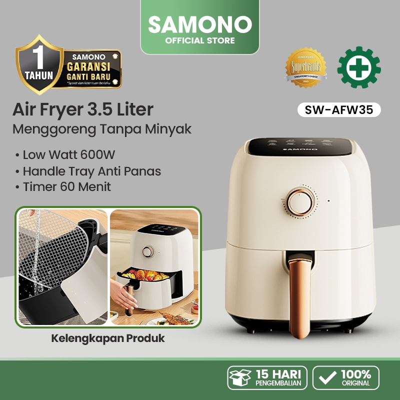 SAMONO Air Fryer 3.5 Liter Hemat Daya 600 Watt Penggorengan Tanpa Minyak Garansi 1 Tahun SW-AFW35