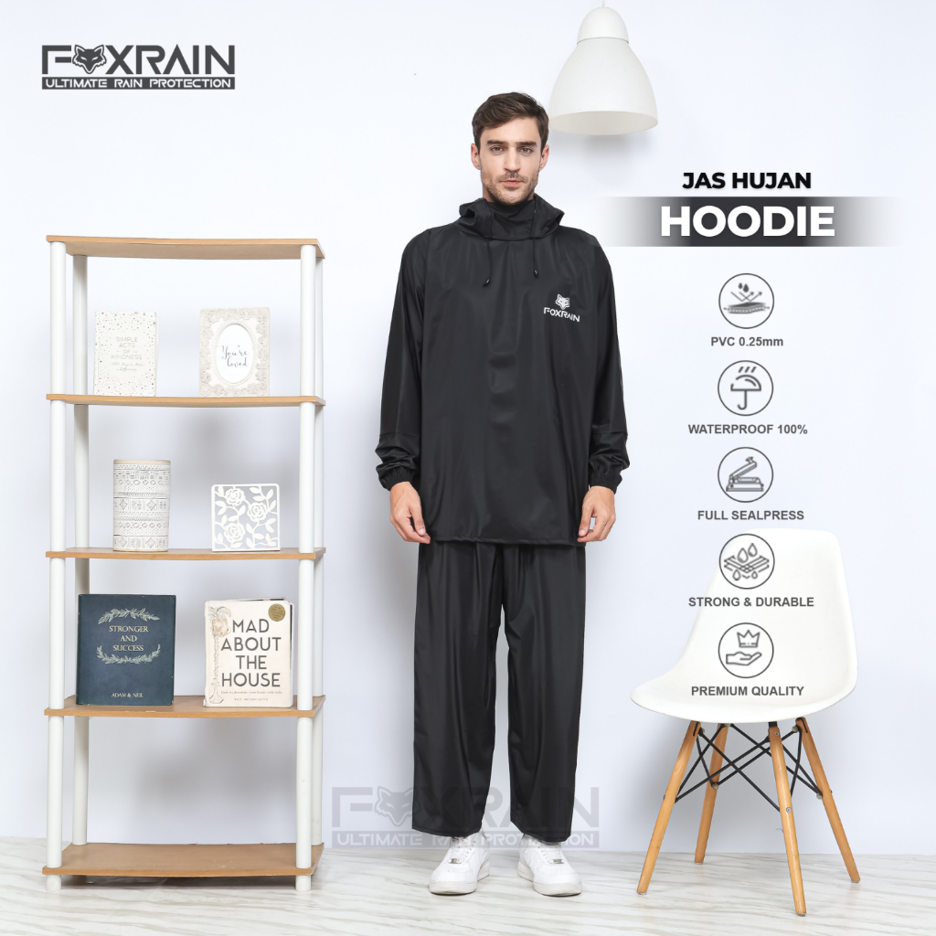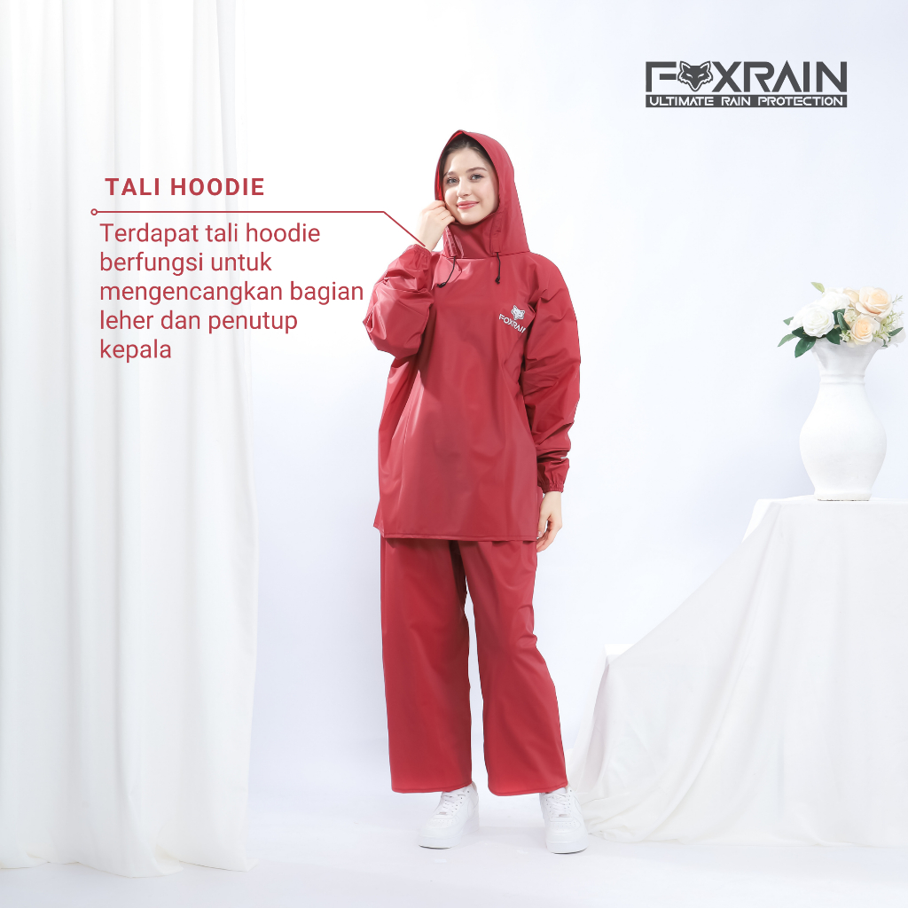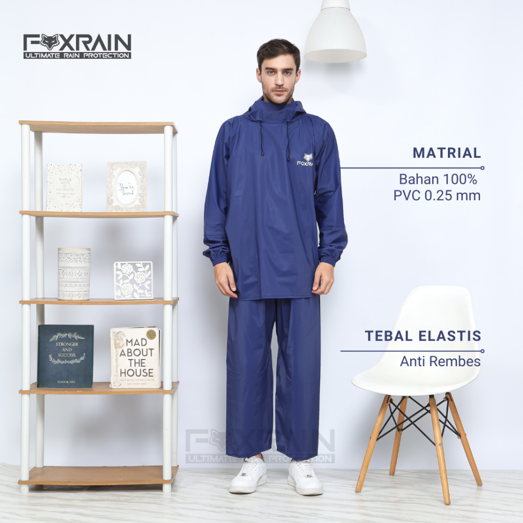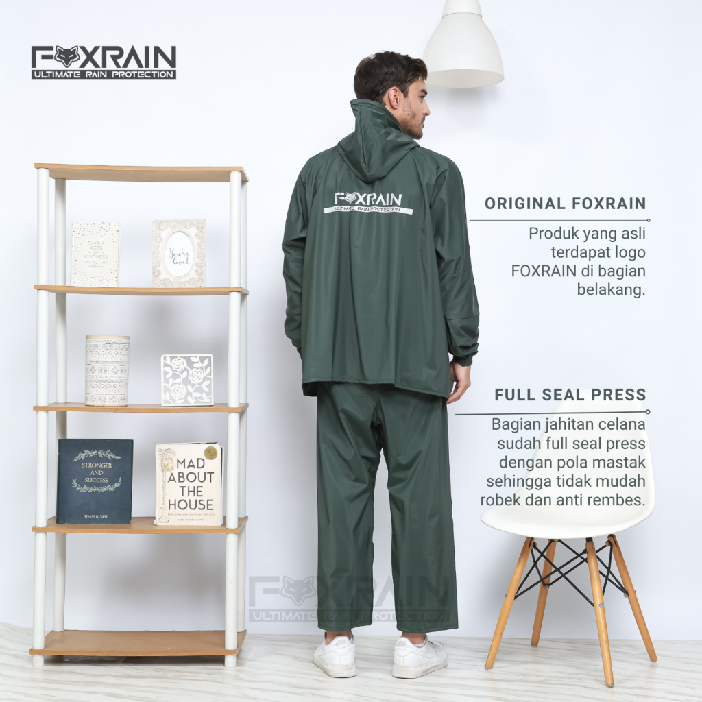 Jas Hujan FOXRAIN Hoodie Tanpa Resleting Bahan PVC 0.25 Celana Full Press Anti Rembes & Anti Robek