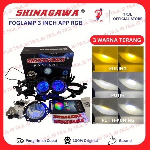 FOGLAMP BILED 3 INCH 3 WARNA SHINAGAWA APP DEVIL RGB 210+ MODE BLUE LENS