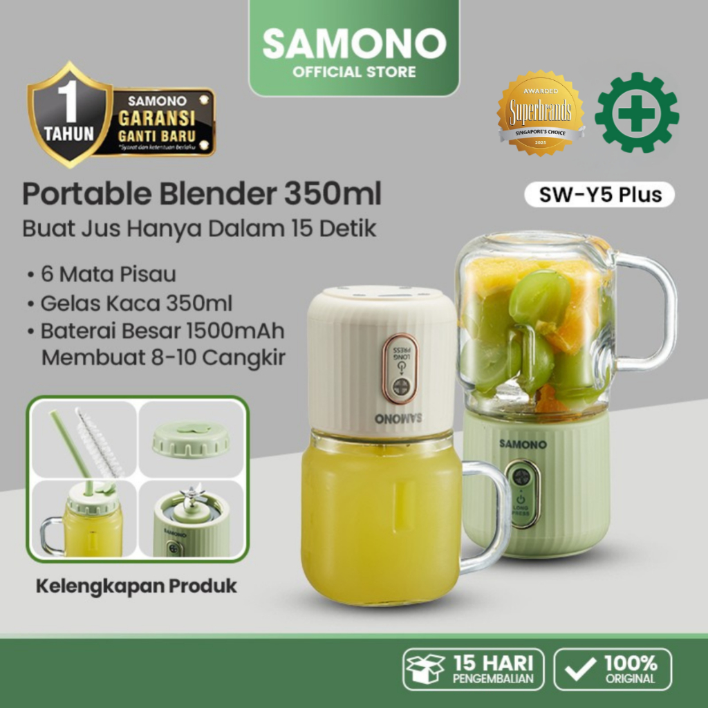 SAMONO Portable Juicer Gelas Kaca 350ml juicer portable blander jus portable belender jus blender buah blender jus buah blender mini portable SW-Y5 Plus