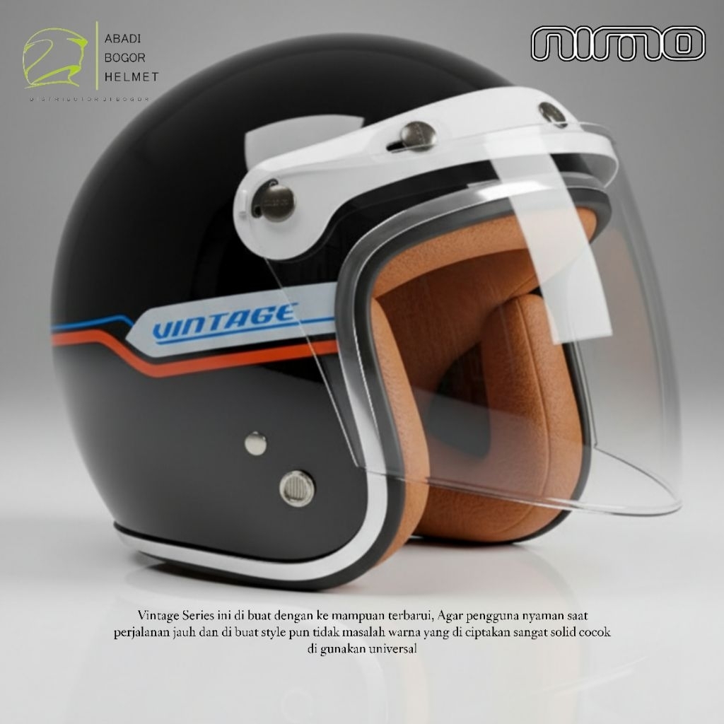 HELM BOGO NIMO SERIES VINTAGE PREMIUM KACA FREAM HELM ABS BLACK GLOSSY