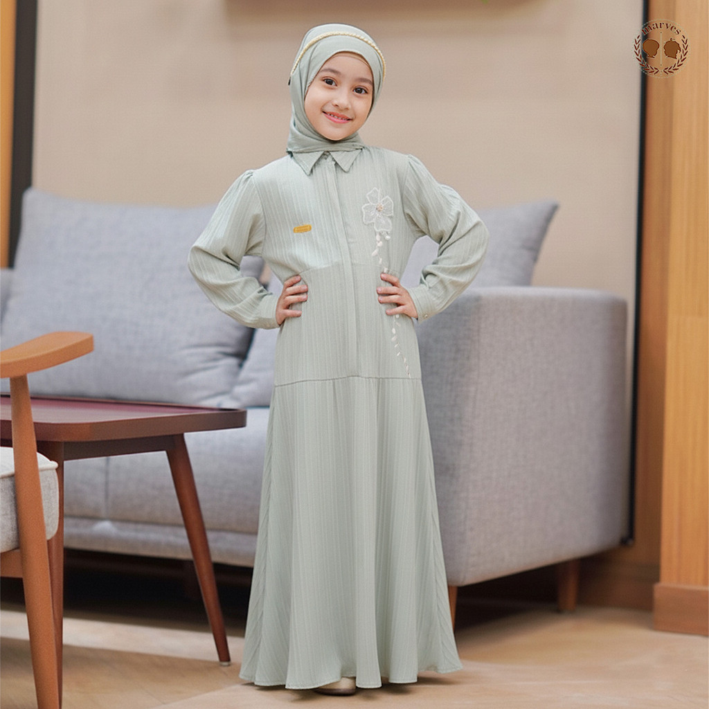 Marves Tsalisa Gamis Baju Muslim Anak Perempuan Bahan Crinkle Elora Usia 1 Hingga 14 Tahun