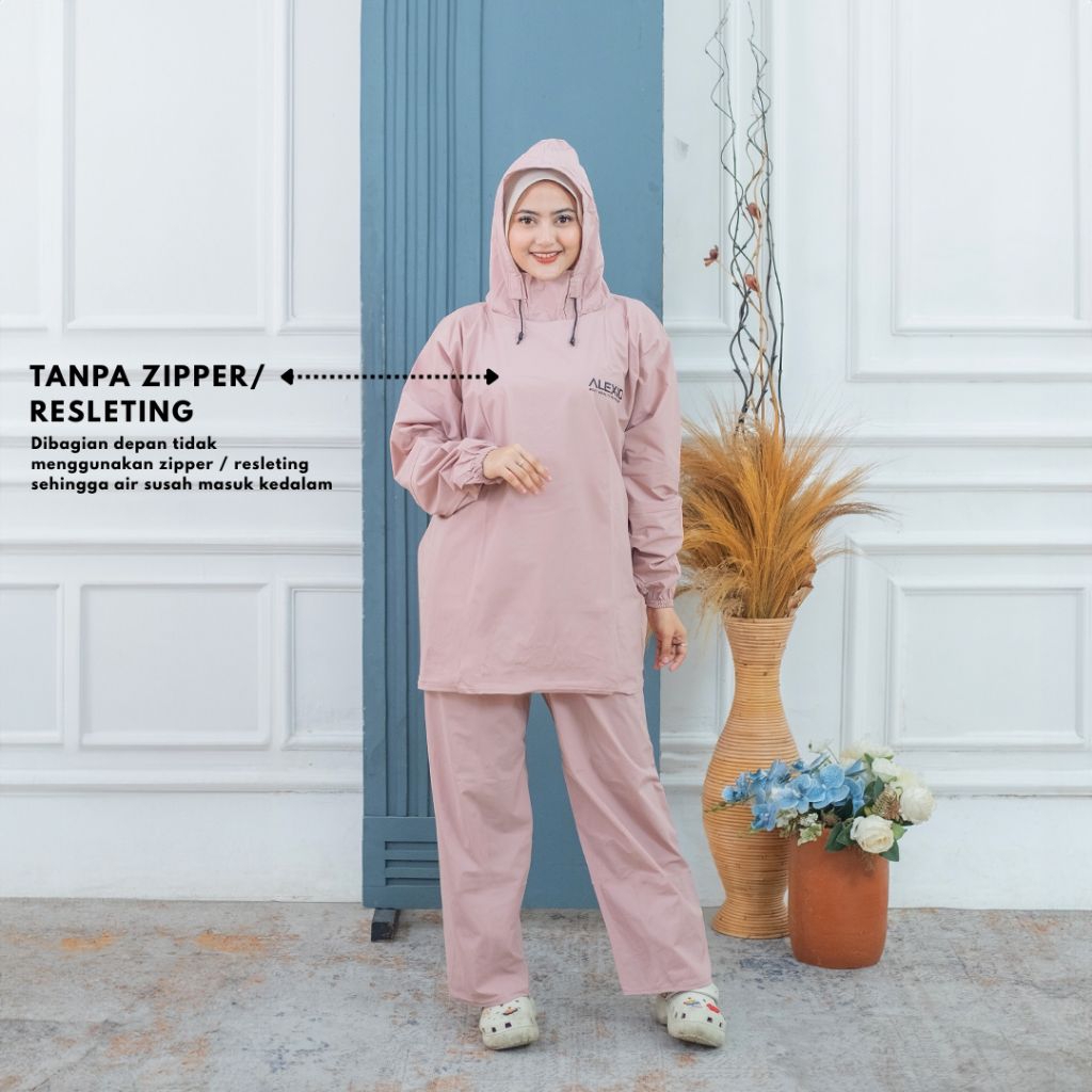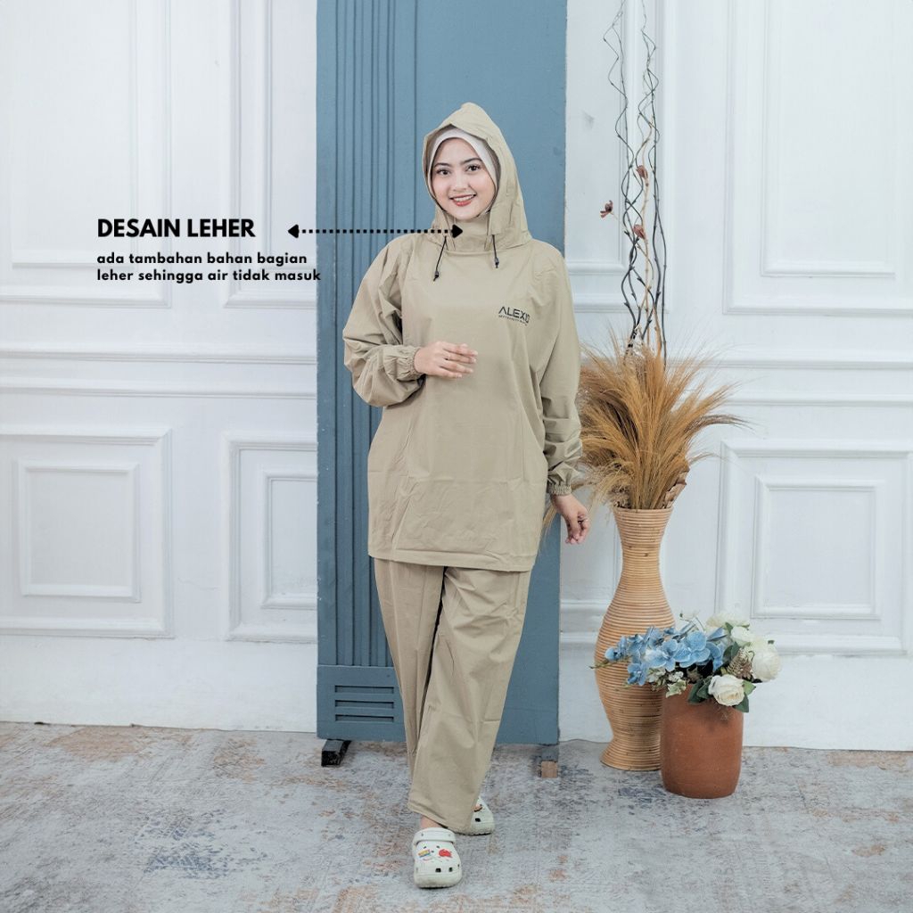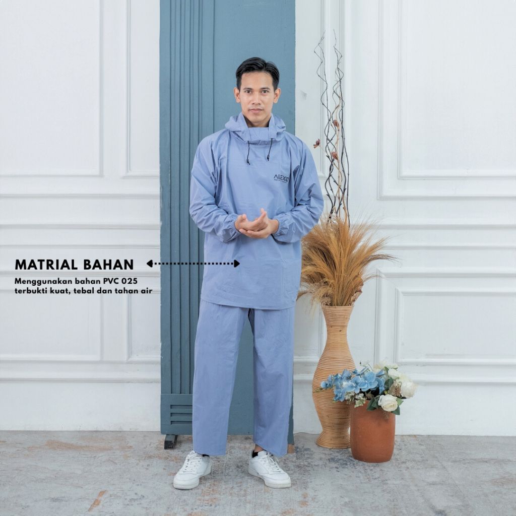 Jas Hujan Hoodie Pria Wanita Bahan Tebal Kuat Elastis Anti Rembes BY ALEXIO