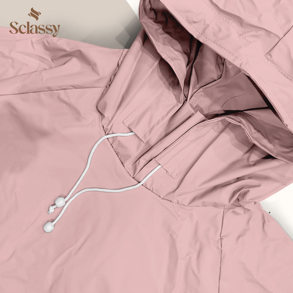 SCLASSY Jas Hujan Wanita Pink Pastel Stelan Celana