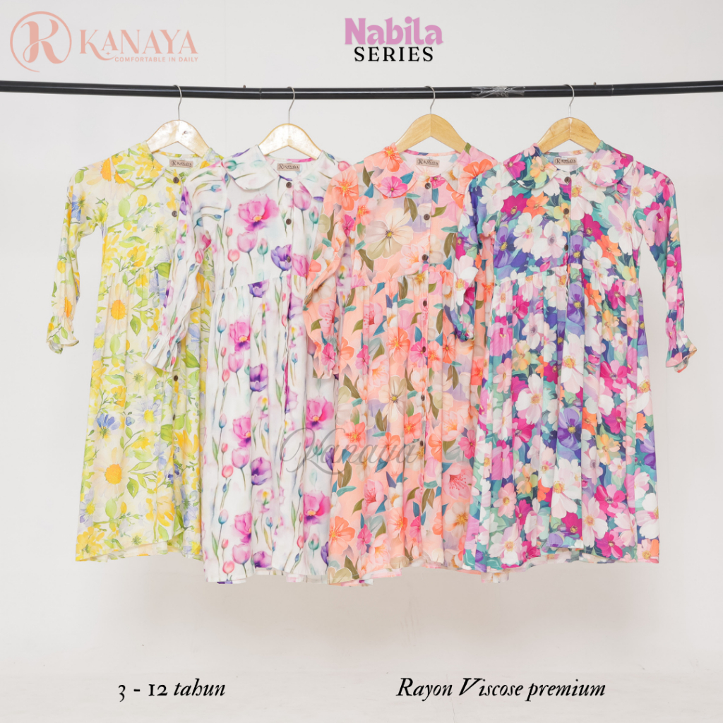 Gamis Anak Perempuan 3 - 12 Tahun Rayon Viscose Premium Nabila Series By Kanaya