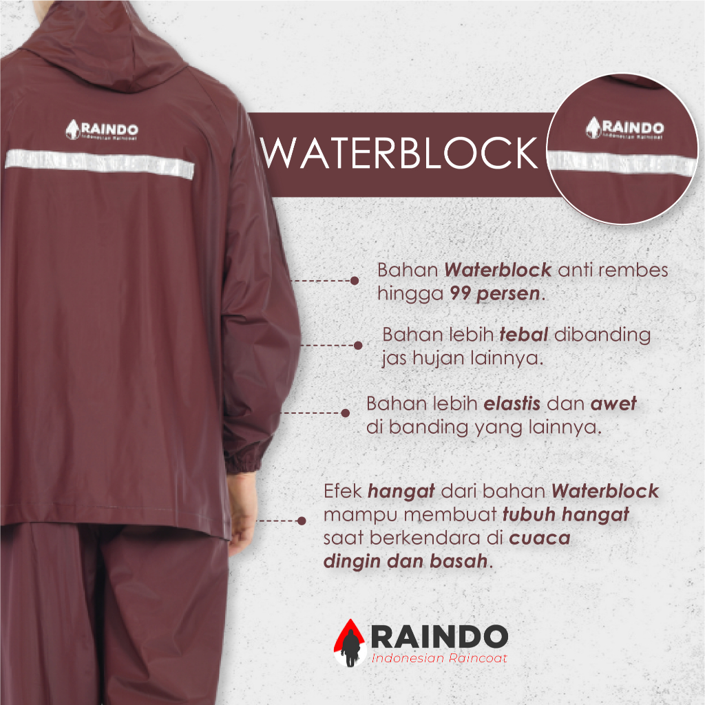 RAINDO Jas Hujan Pria Wanita Dewasa Setelan Jaket Celana Tebal