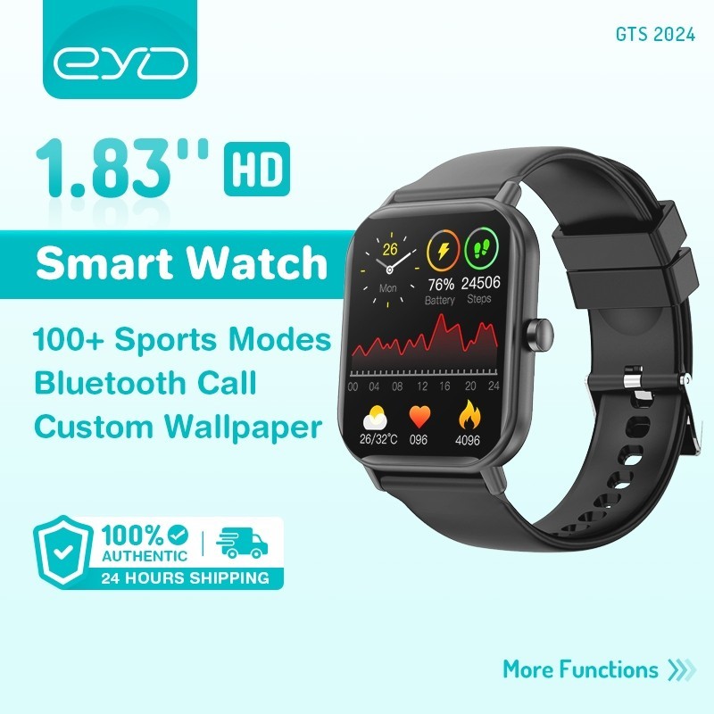 EYD GTS Smartwatch Original 1.83" Jam Tangan Pria dan Jam Tangan Wanita Real Heart Rate Monitor Smart Watch Waterproof Custom Wallpaper Fitness Tracker Blood Pressure Monitoring Sport Watch