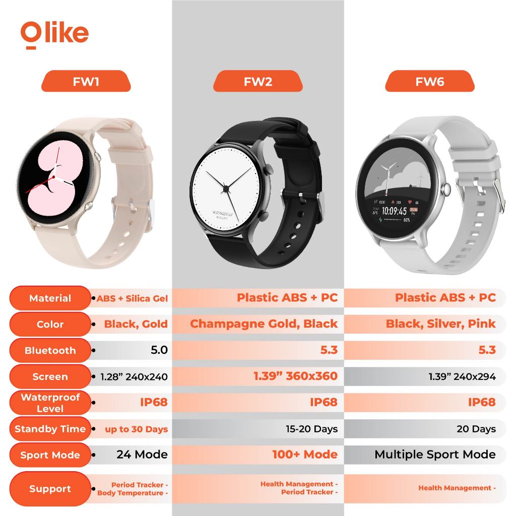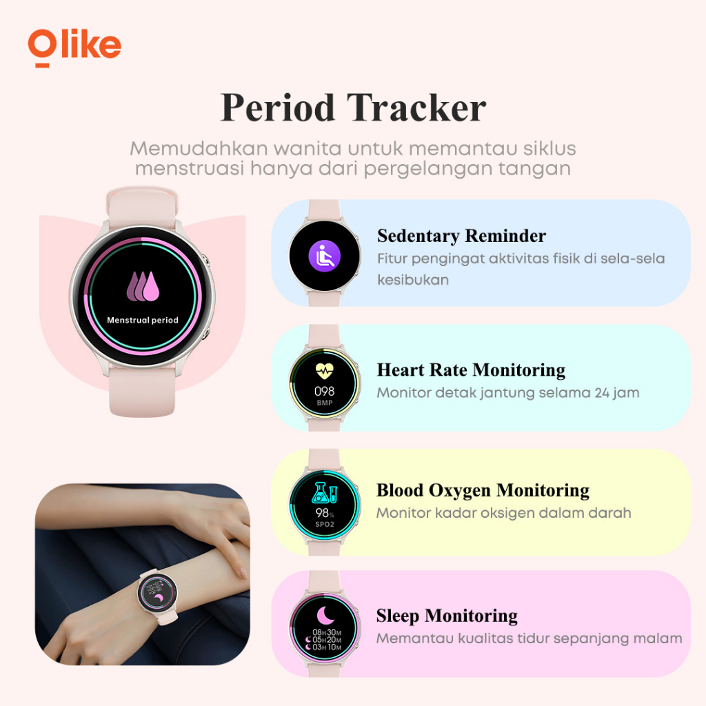 OLIKE Smartwatch Wanita FW1 HD Display 1.28 Inch Water Resistant IP68 Health & Sleep Monitoring