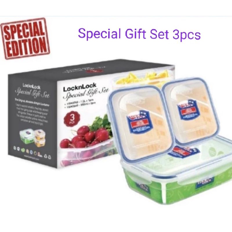 Lock & Lock Gift Set series 3 pcs (LocknLock Kotak Makan Gift Set Chak Chak 920ml 3P Set - LTN330S3IVY)