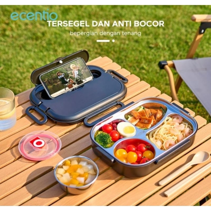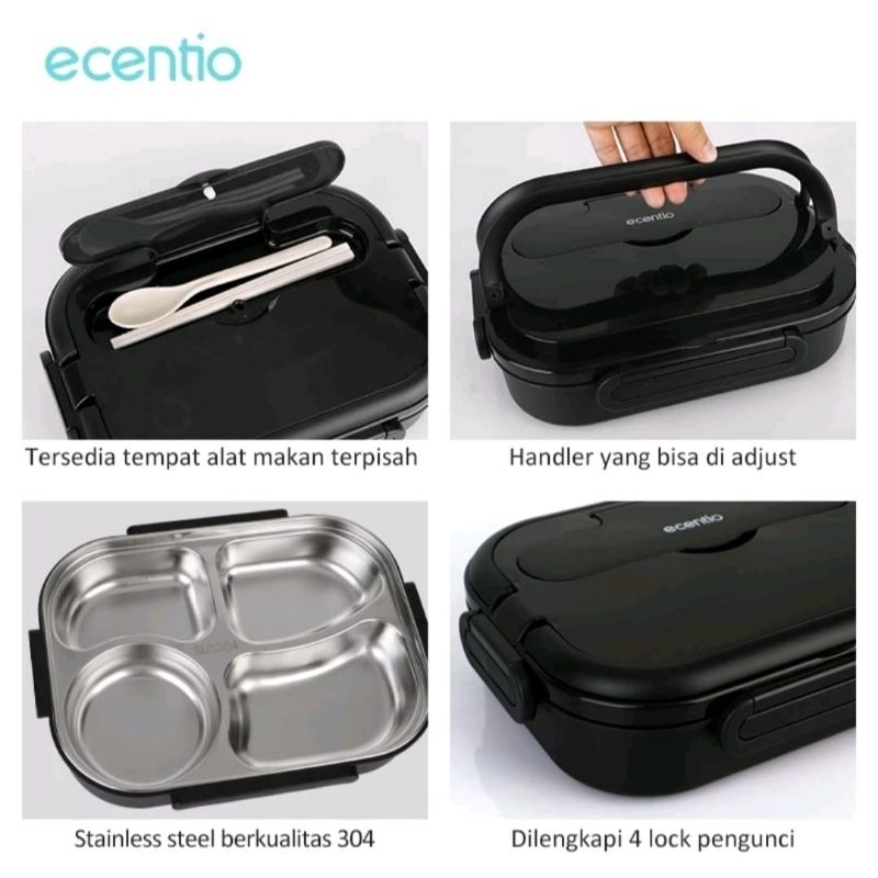 Ecentio Lunch Box Kotak makan Bekal Tempat makan 5skat Stainless Steel 1000ml 4skat Black Dan 5skat blue Lunch Box Kotak