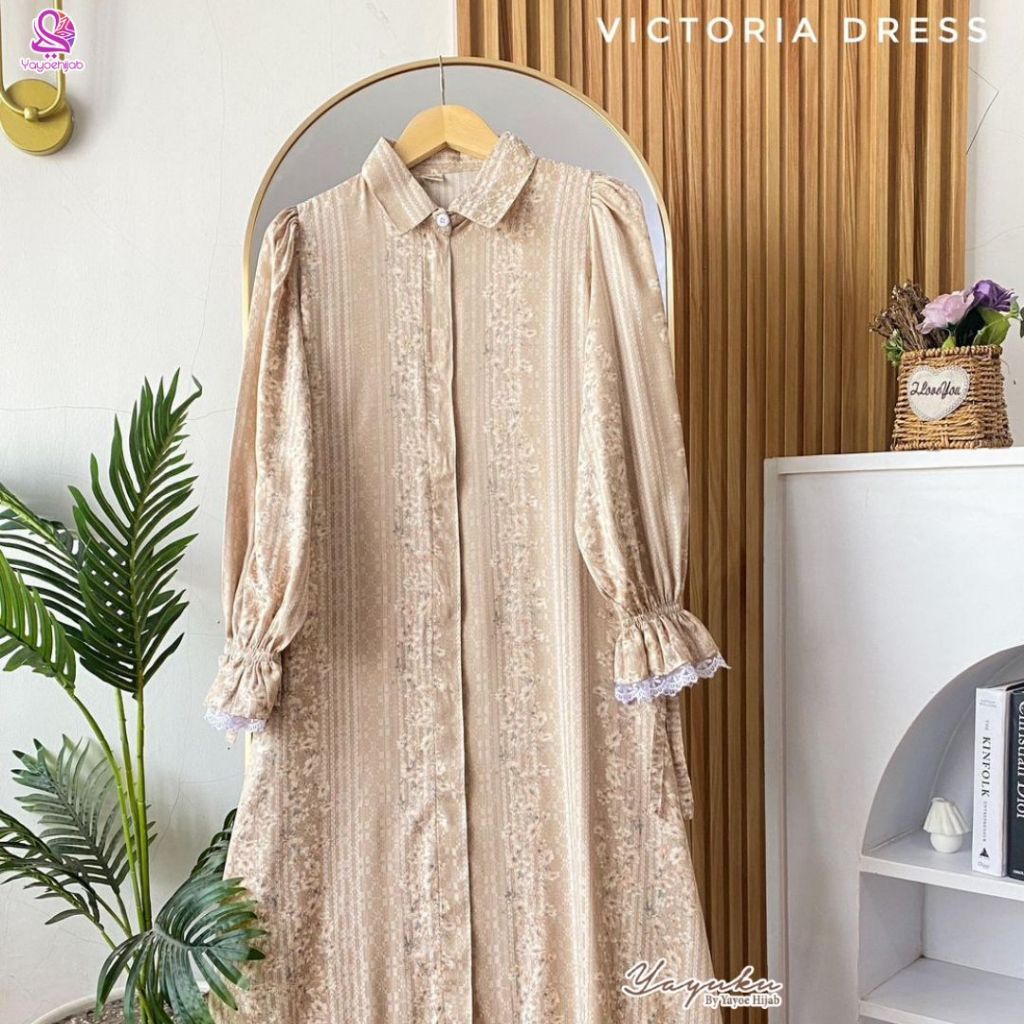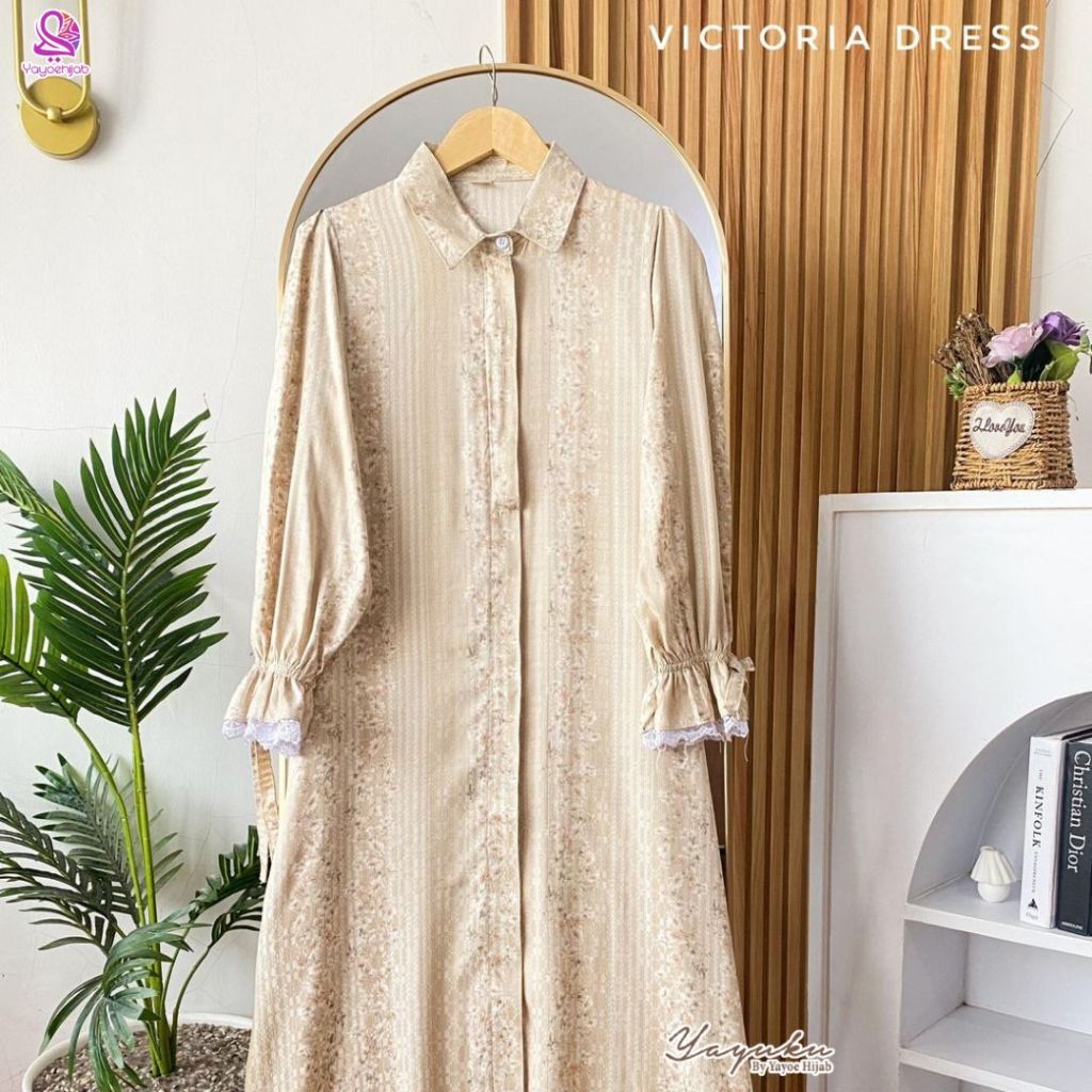 Victoria Dress Gamis Motif Elegan Lengan Panjang Busui Friendly Adem Nyaman Dipakai Look Mewah