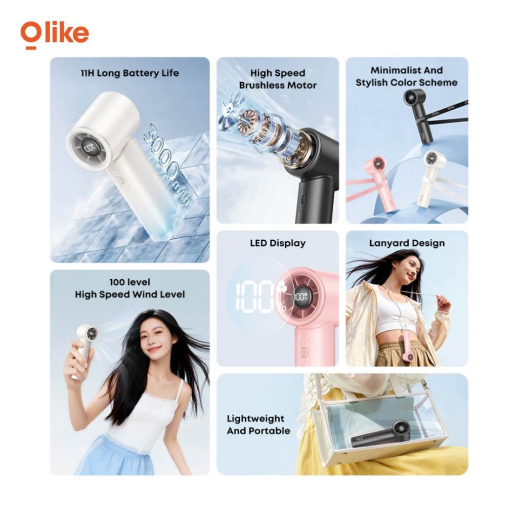 Olike Mini Fan PF13 Turbo Speed Kipas Stylish Minimalis 100 Level High Speed Baterai Tahan Hingga 11 Jam