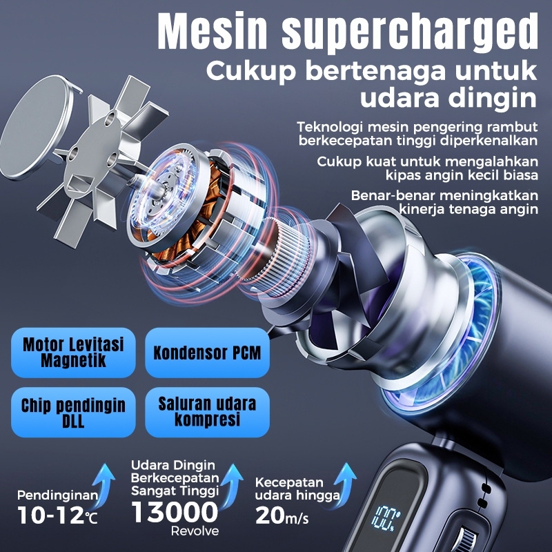 Kipas Mini Angin Turbo Strong Portable Handheld Rechargeable Fan Lipat High Speed 13000RPM