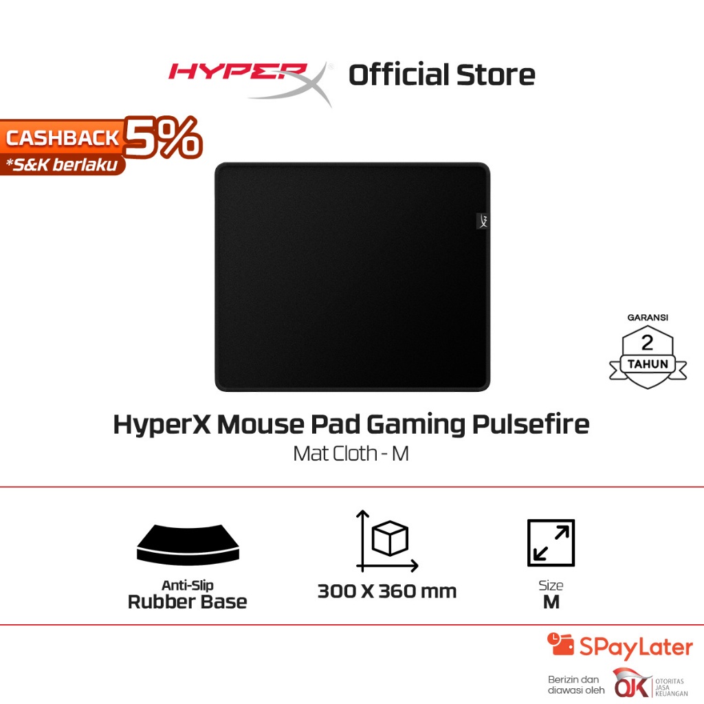 HyperX Mouse Pad Gaming Pulsefire Mat Soft Cloth - M Black Original Rubber Anti Slip Deskmat Promo Cicilan Murah 300mm x 360mm Splash Proof