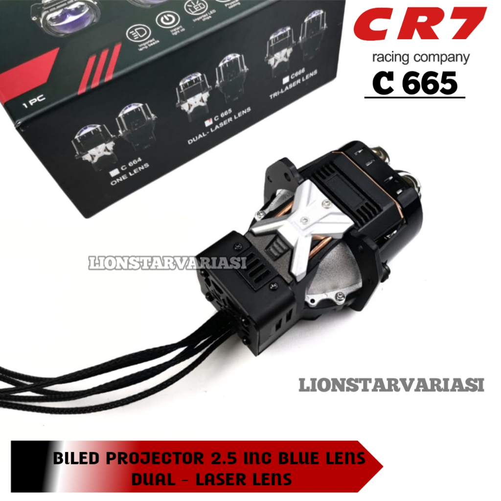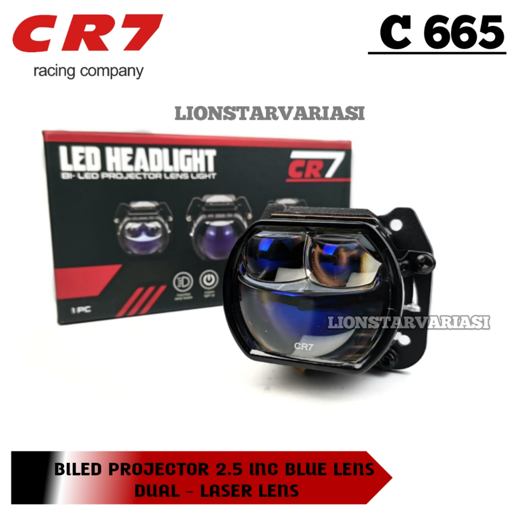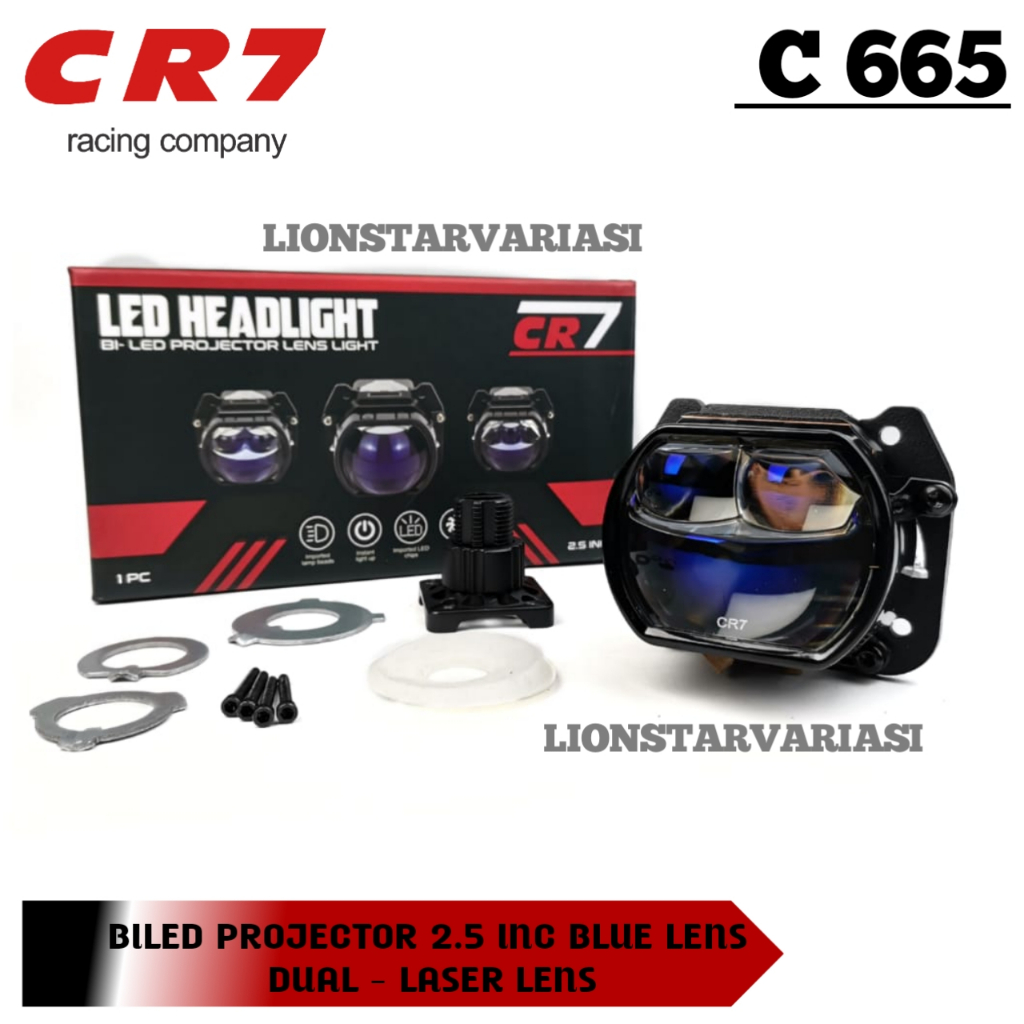 CR7 C665 - Biled Projector 2.5 Inc Blue Lens Plus 2 Mata Laser Devil High Low dan Kipas Premium