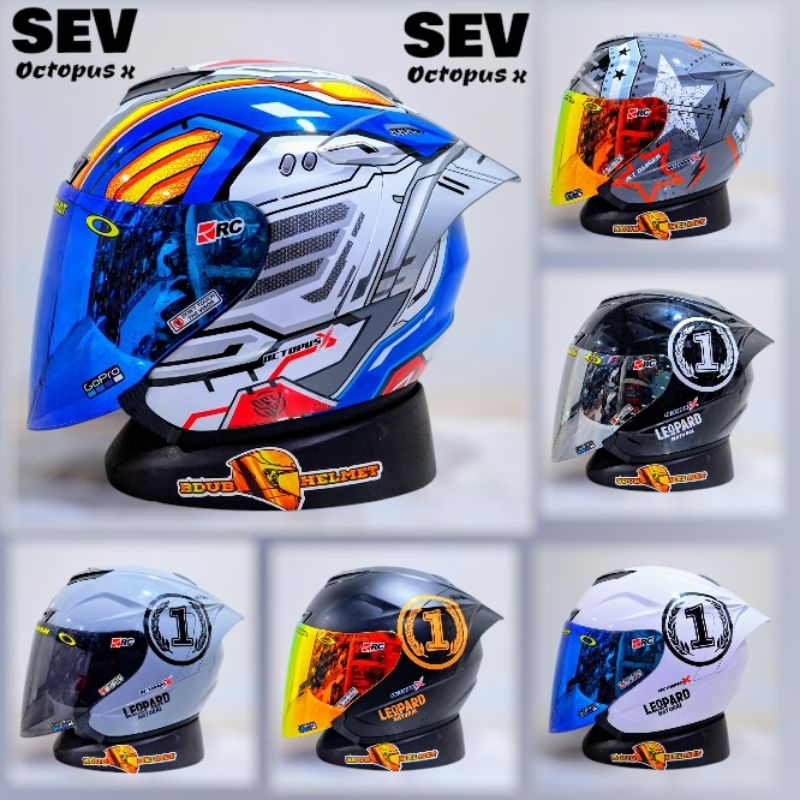 Helm Sev X Octopus motif Robotic gorila gloss paket ganteng spoiler 3D