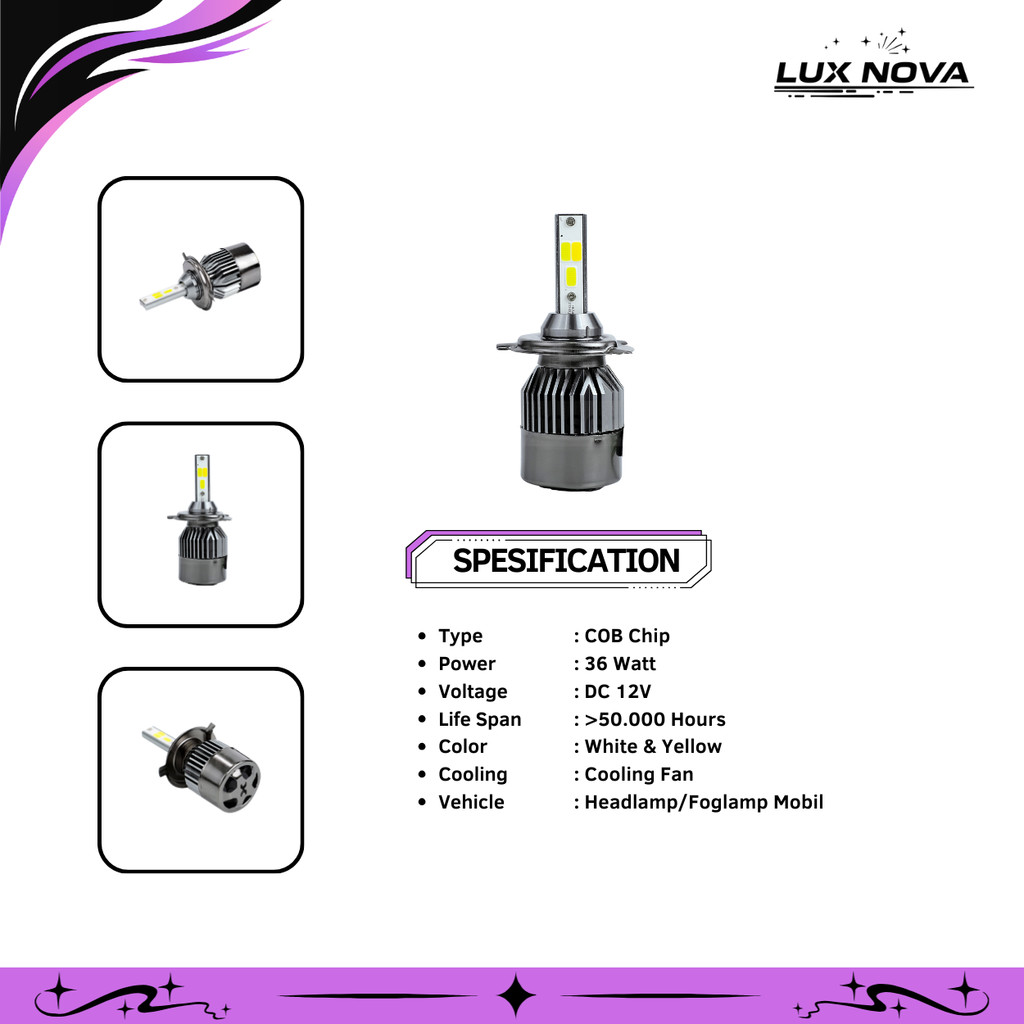Lampu Depan Mobil 72W H4 H11 HB3 HB4 PNP 3 Warna Super Terang Tembus Hujan Kabut X9 LUXIMOS NINE