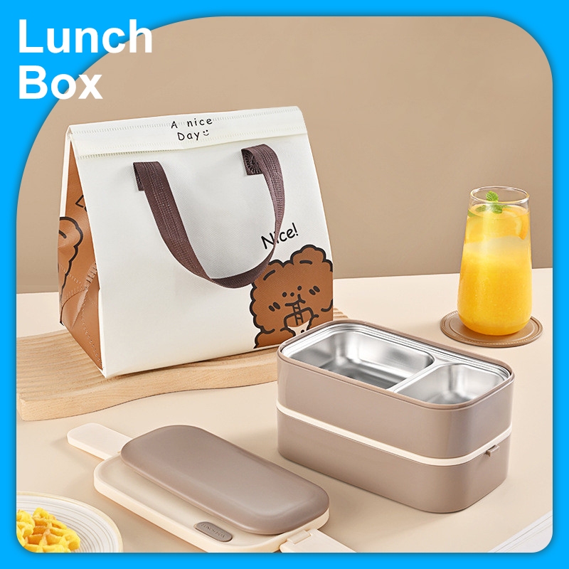 Lunch Box Kotak Makan Siang Stainless Kotak bento Portabel Tahan Bocor Kotak Bento Microwa