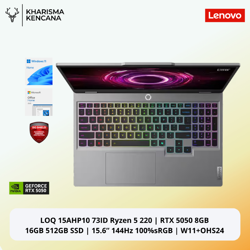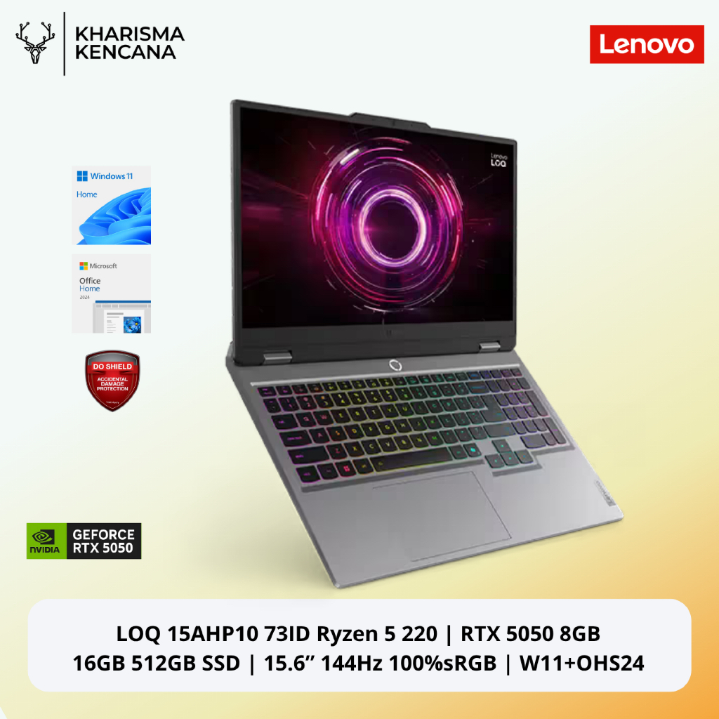 Lenovo LOQ 15AHP10 73ID | Ryzen 5 220 | RTX 5050 8GB | 16GB 512GB SSD | 15.6” FHD 144Hz | W11+OHS24