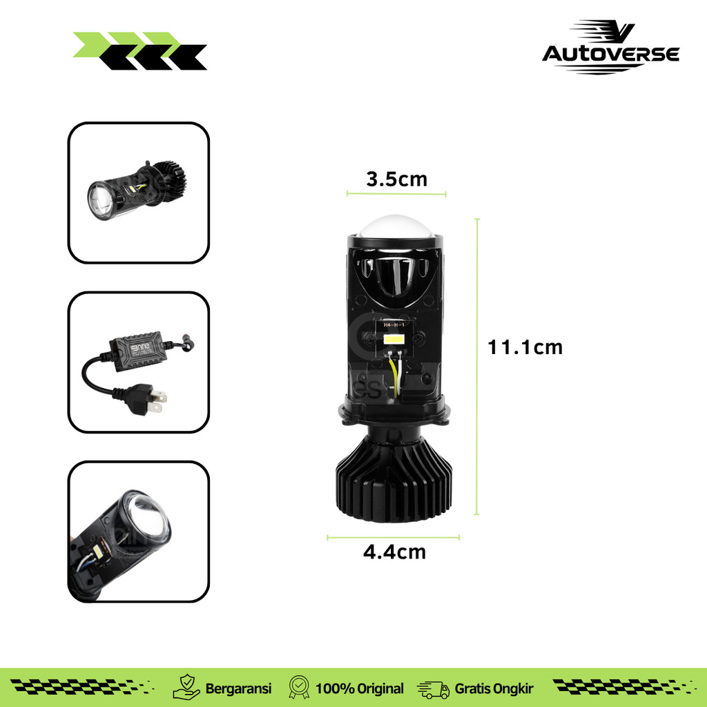 Lampu Utama Mini Projie Laser H4 LED 30W Motor Mobil Tembus Hujan Kabut MP1 LUXIMOS Super Terang