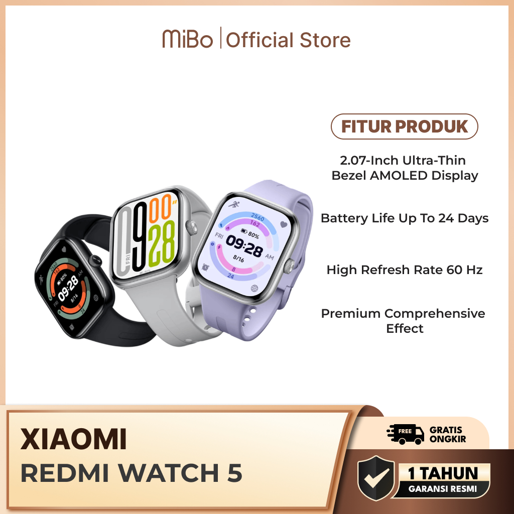 Xiaomi Redmi Watch 5 2.07 Inch AMOLED 5 GNSS Battery 24 Hari Support Telepon Bluetooth