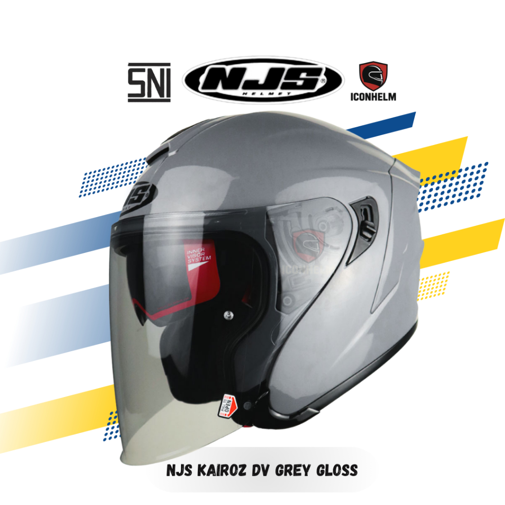 NJS Kairoz Polos DV Double Visor Solid ORIGINAL - Helm Half Face Hitam / Abu / Putih Intercom Ready