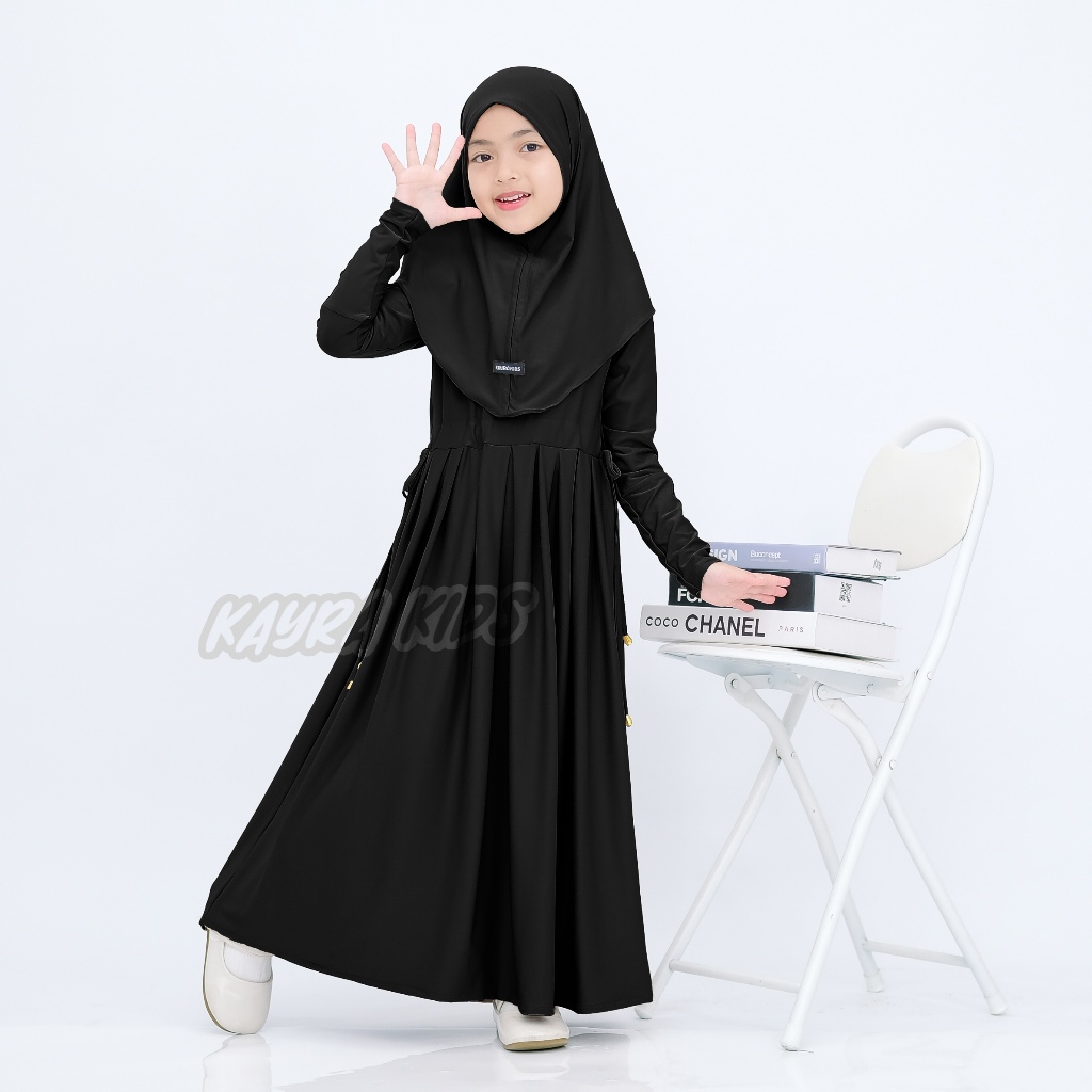 Gamis Abaya Anak Inara Serut Pinggang Usia 0-9 Tahun Bahan Jersey Lembut Dan Adem Free Hijab Muslim Panjang Nyaman