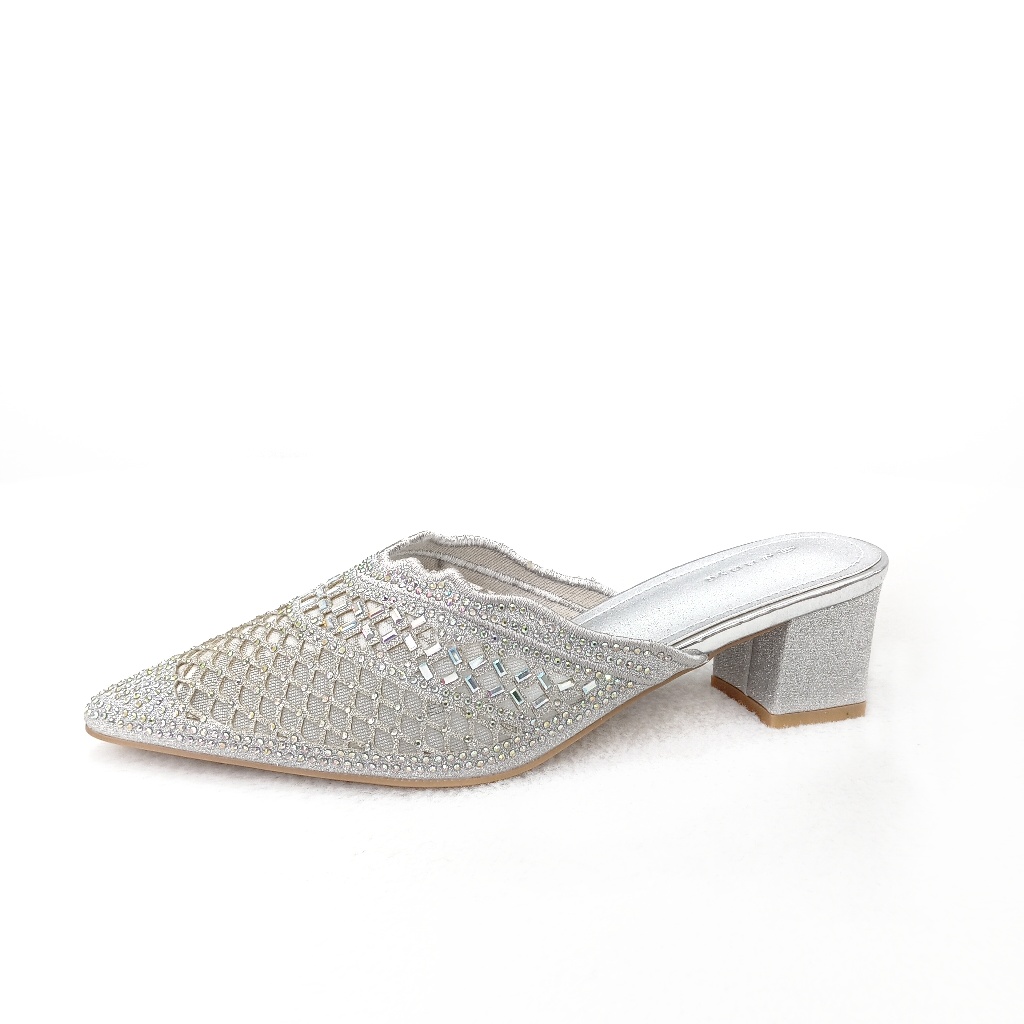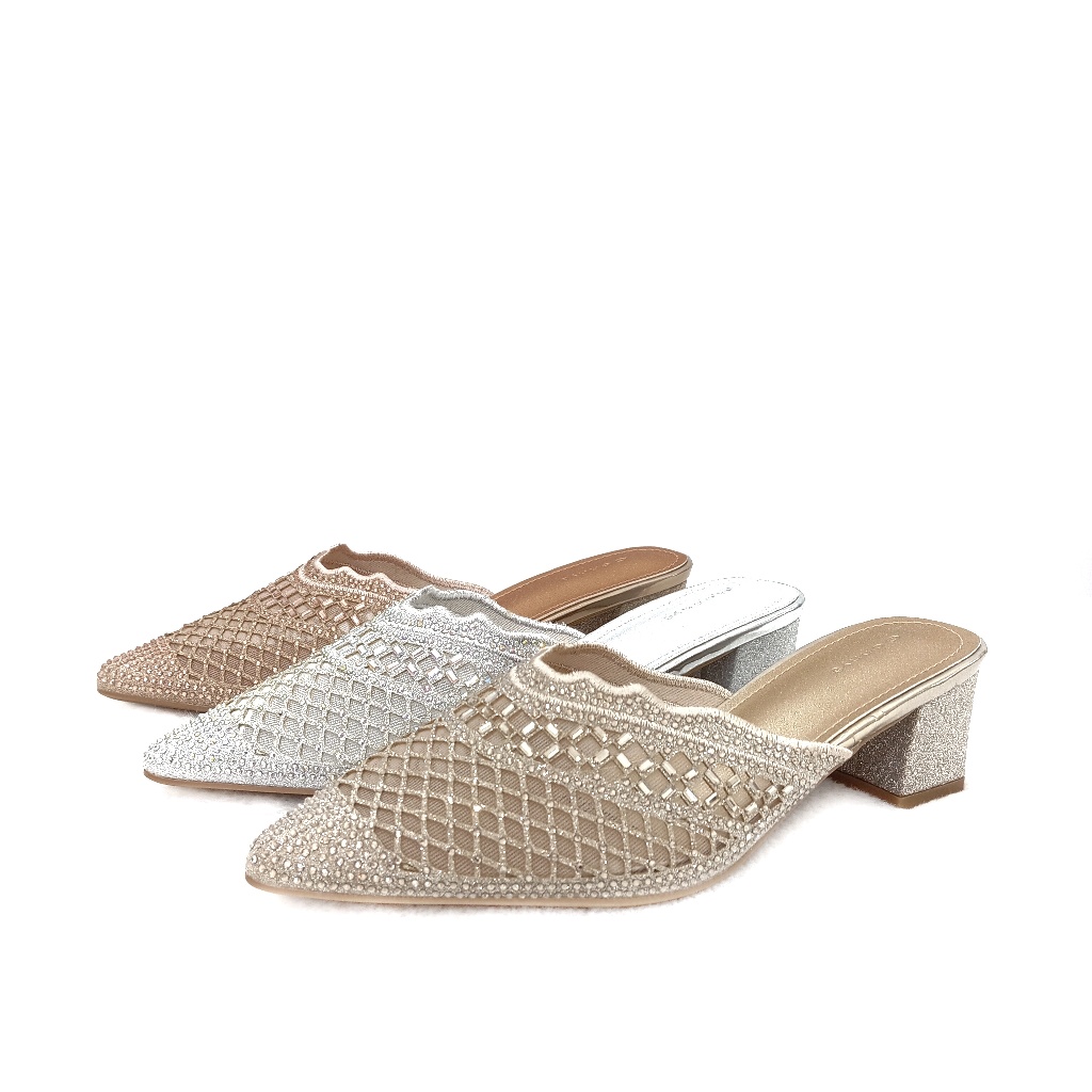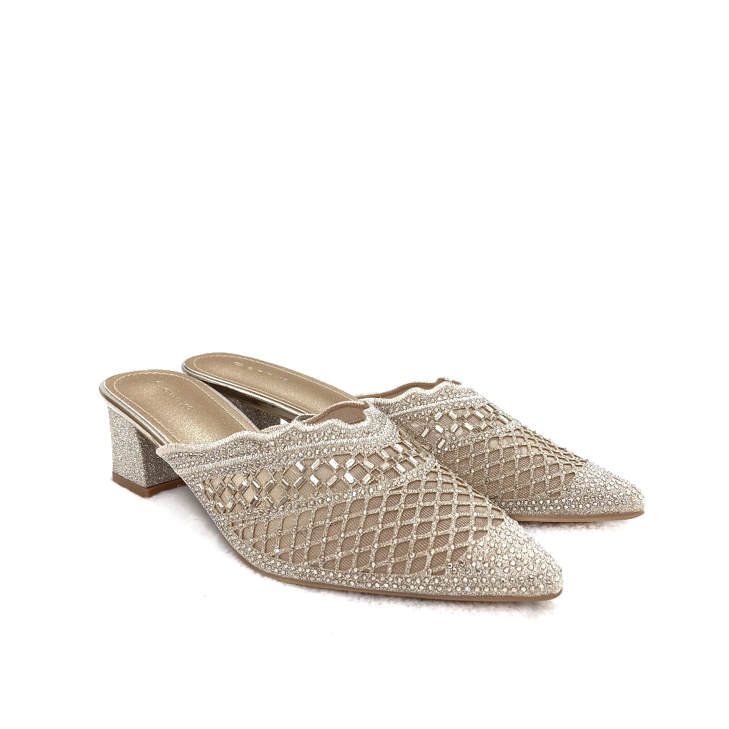 Genny Signature - Sandal Bustong Wanita Tumit Tahu 5 CM Desain Mewah Nyaman Brukat Manik Manik K1285023