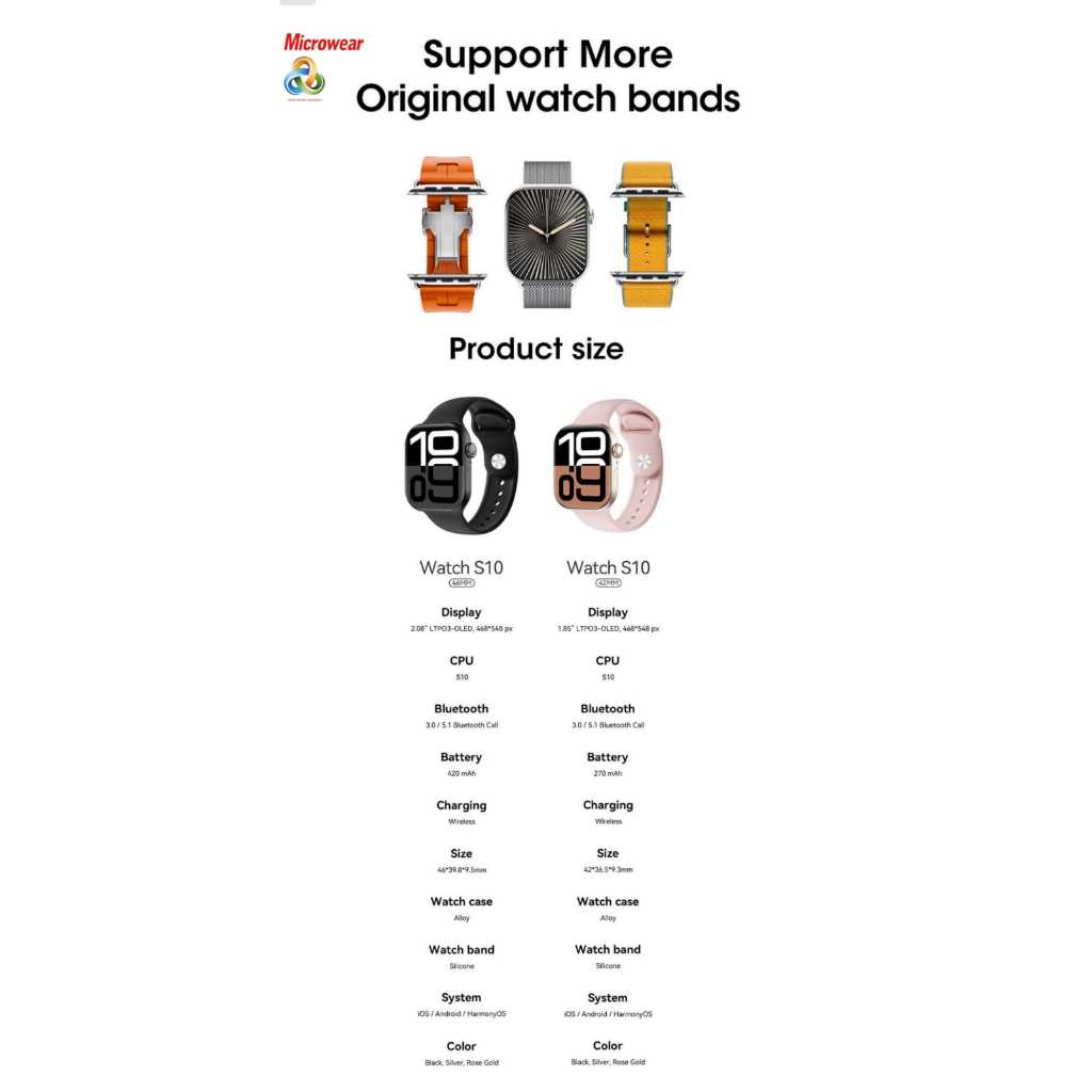 Microware Smartwatch W10 Pro Original 100 PERSEN - 46mm - Black / White / Rosegold - Amoled Display