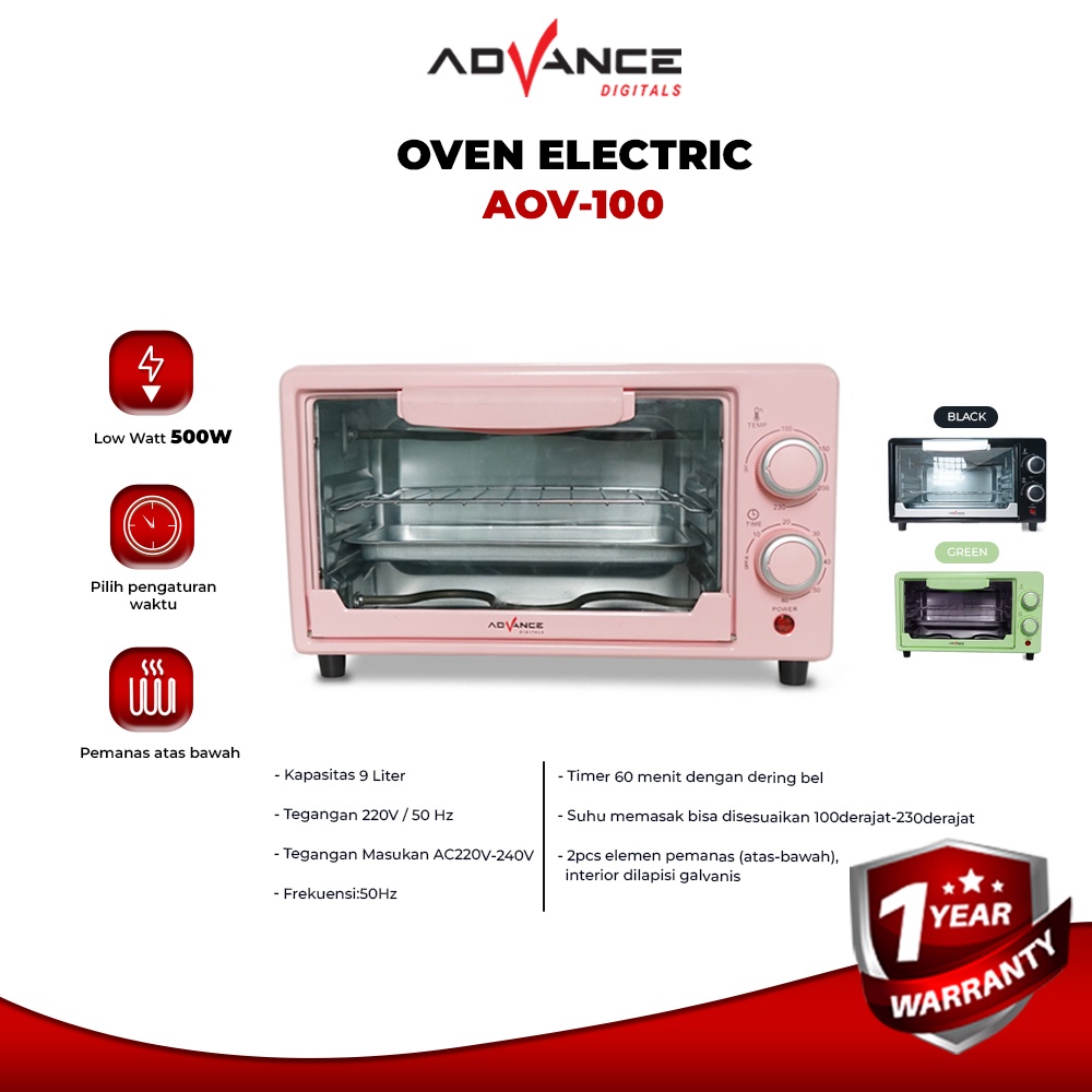 Advance Electric Oven (Oven Listrik ) AOV-100 Kapasitas 9L Garansi Resmi Advance 1 Tahun