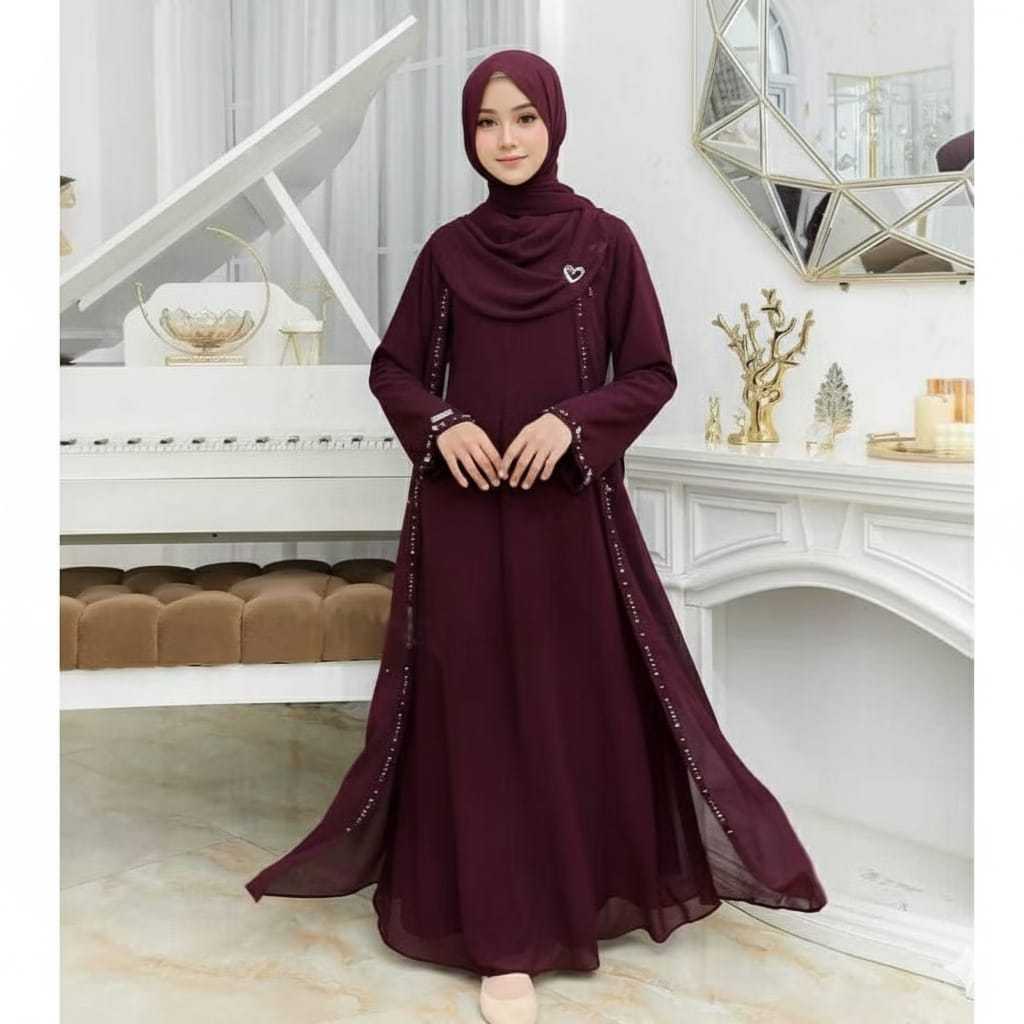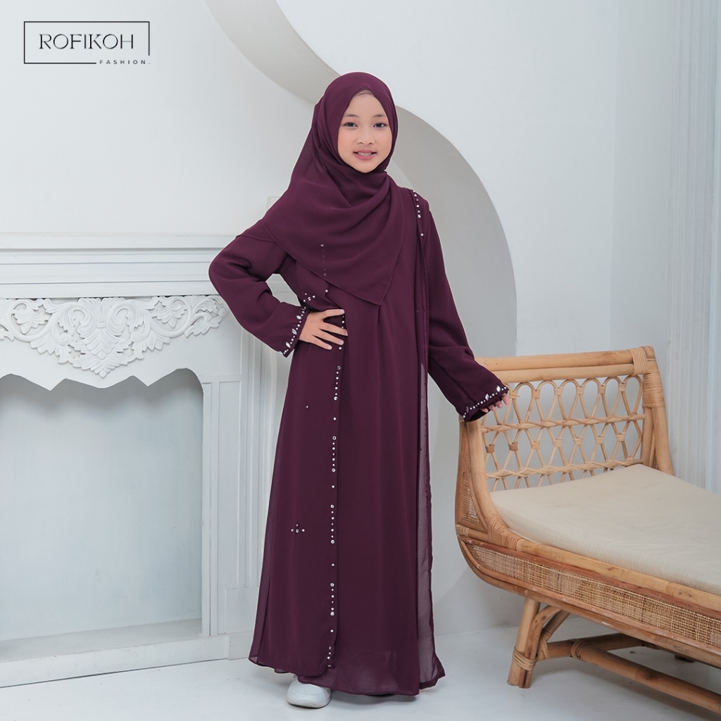 Gamis Anak Perempuan Khanza Dress Ceruty Swarovsky | Gamis Lebaran Anak Perempuan 2025 Baju Muslim Anak Perempuan Tanggung Terbaru Kekinian Usia 6 Sampai 14 Tahun Bahan Ceruty Baby Doll Armani