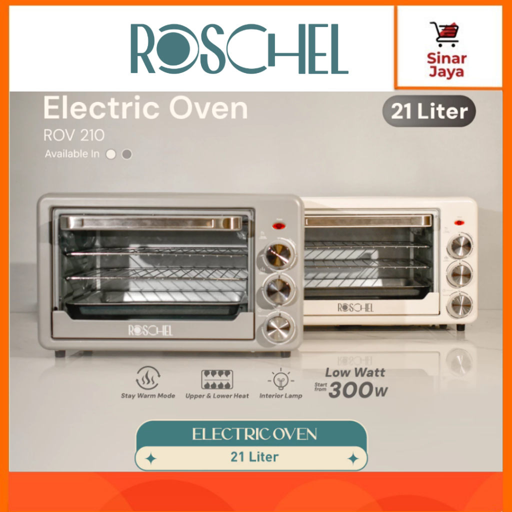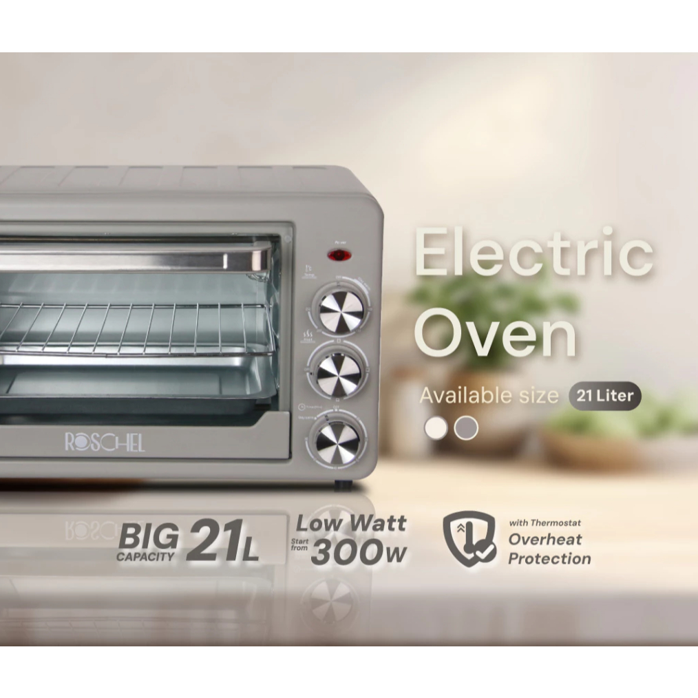 ROSCHEL ROV-210 Oven Listrik Toaster Low Watt 21 Liter (2x300 Watt, Api Atas Bawah)
