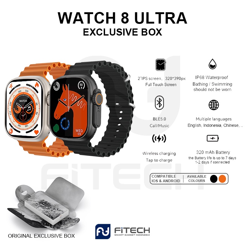 [ Original Bergaransi ] FITECH WATCH 8 ULTRA Bahasa Indonesia Original Box 1:1 Full Layar Infinite Display Original Smartwatch Heart Rate SPO2 Game Bluetooth