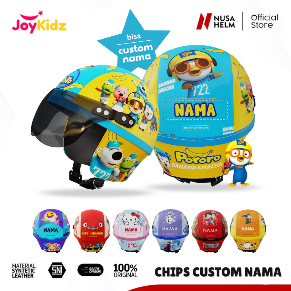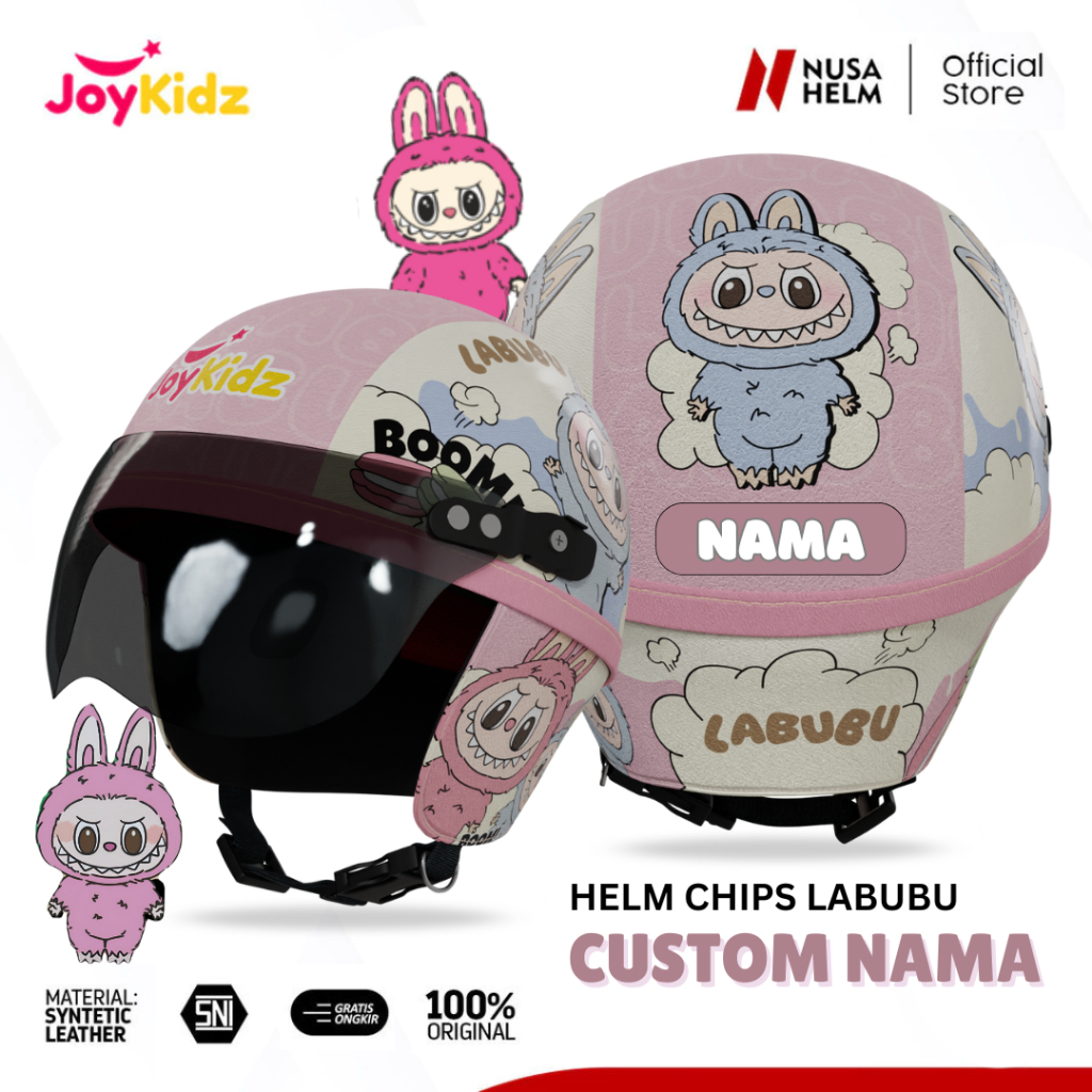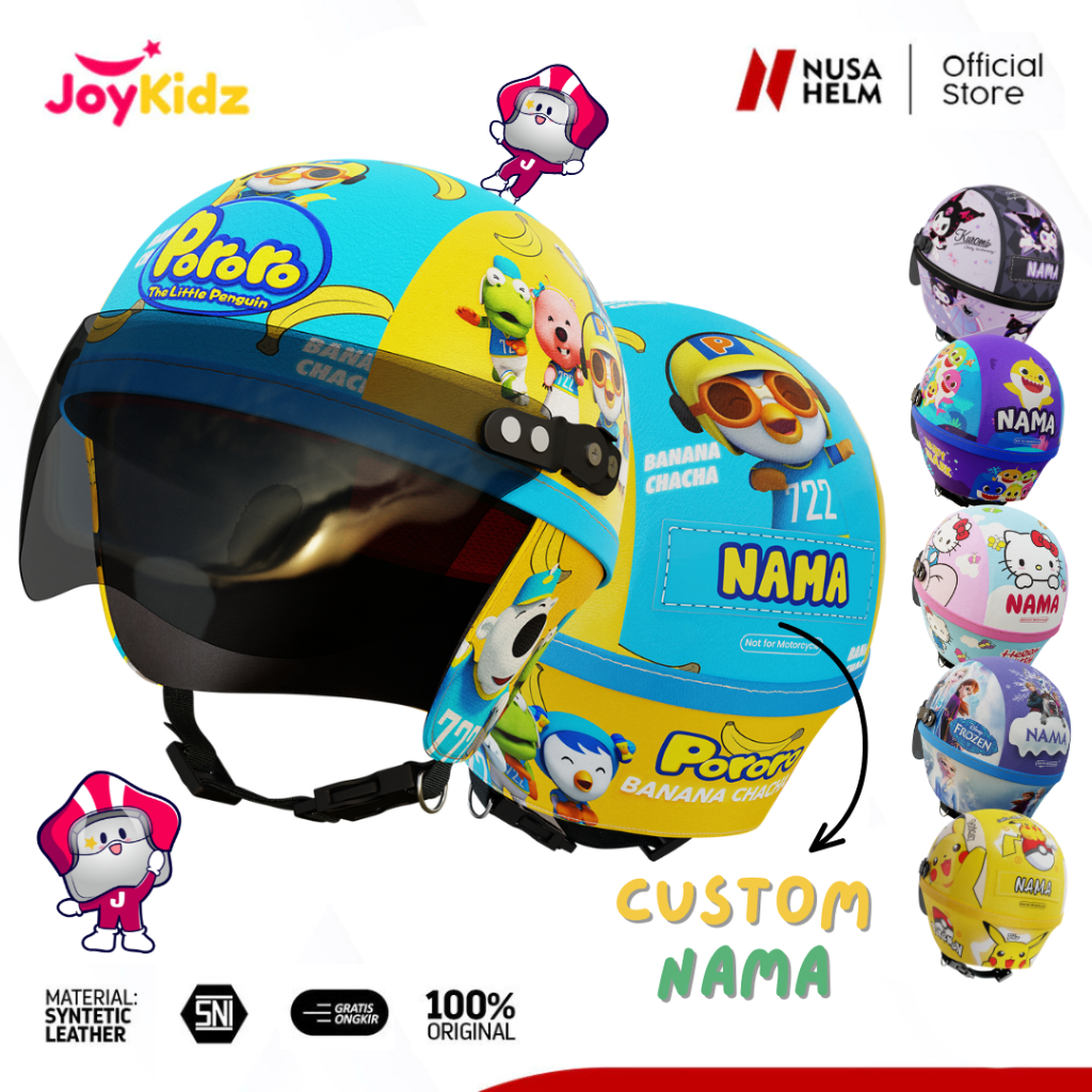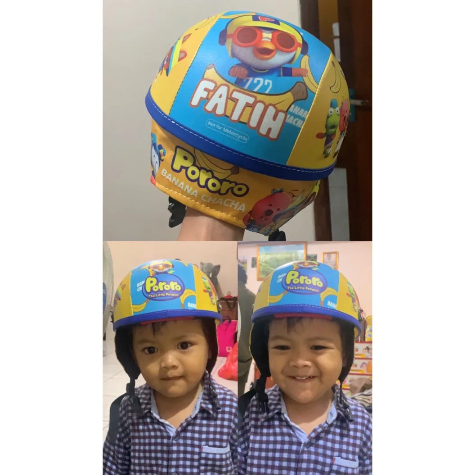 Helm Anak Custom Nama Usia 1 2 3 4 5 Tahun Motif Lucu Karakter Kartun Kulit Premium Pelindung Kepala