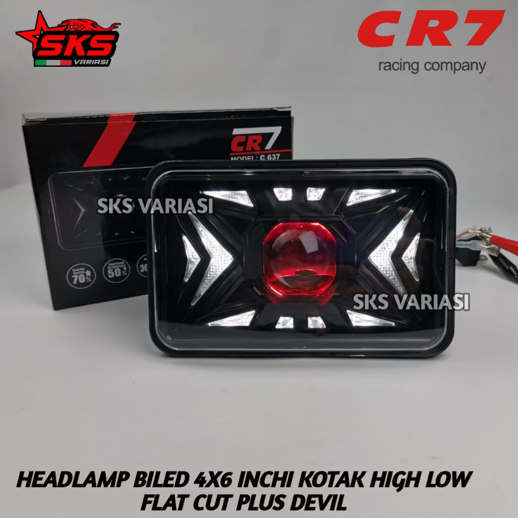Lampu Depan Biled Kotak 4x6 Inch CR7 Plus Devil Senja High Low Mobil Motor Rx King Honda Win Gl100