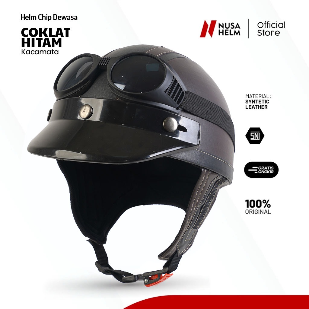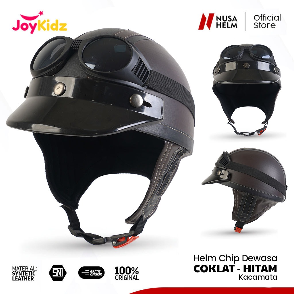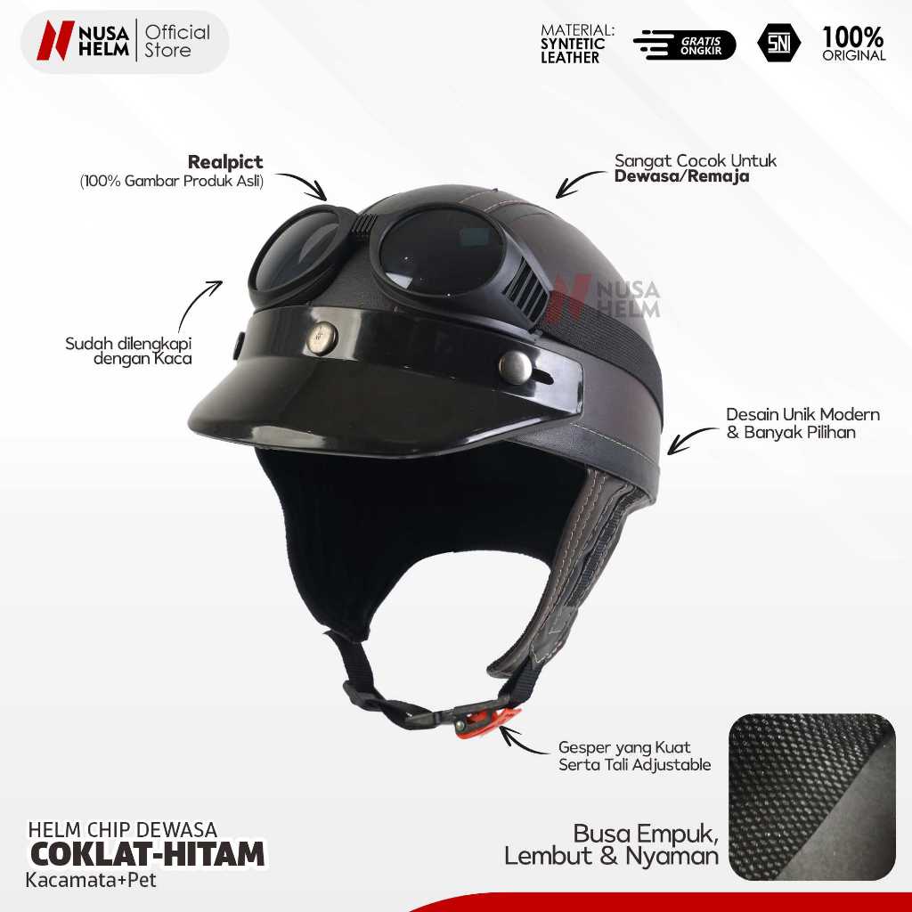Helm Chips Kulit Dewasa Remaja Vintage Helm Vespa Free Packing Kardus