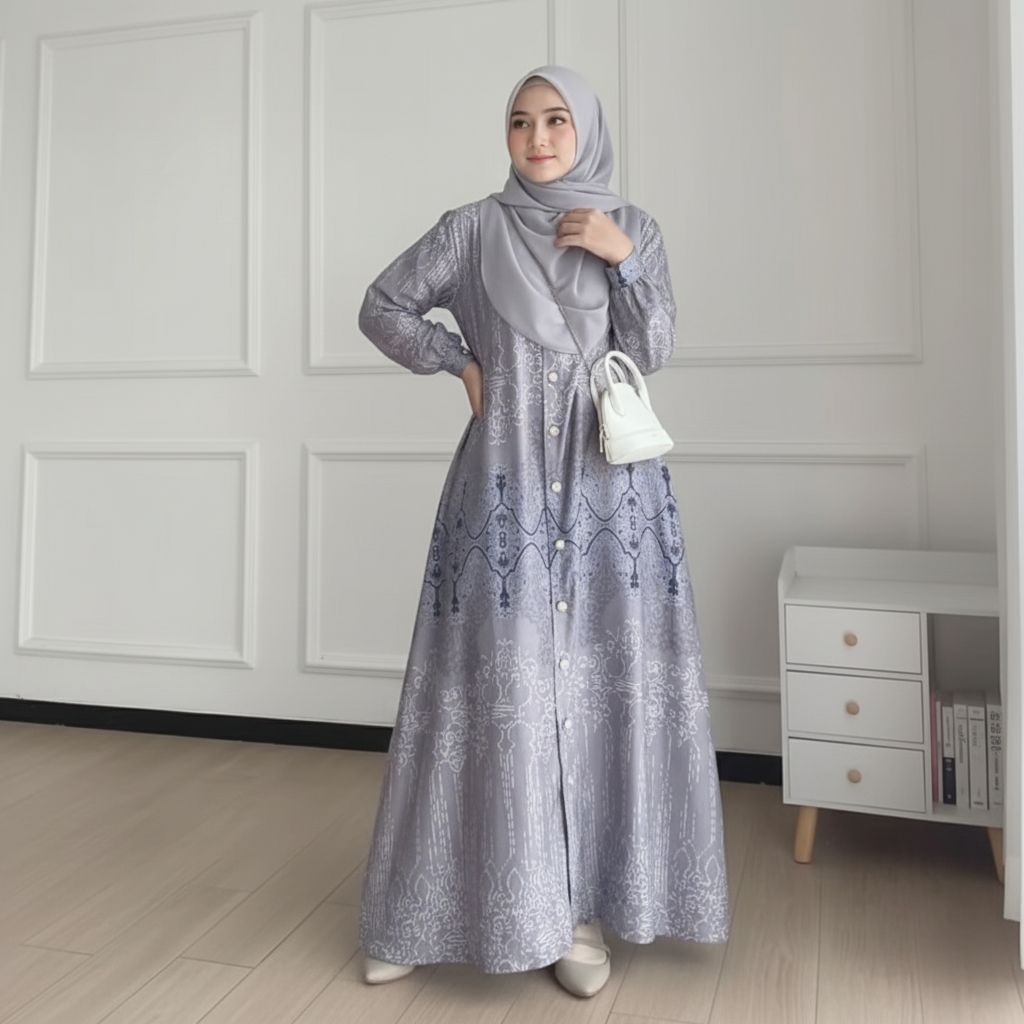Gamis Murah - Difah Dress Motif Bahan Maxmara Luxury Gamis Lebaran Dress Pesta Hari Raya