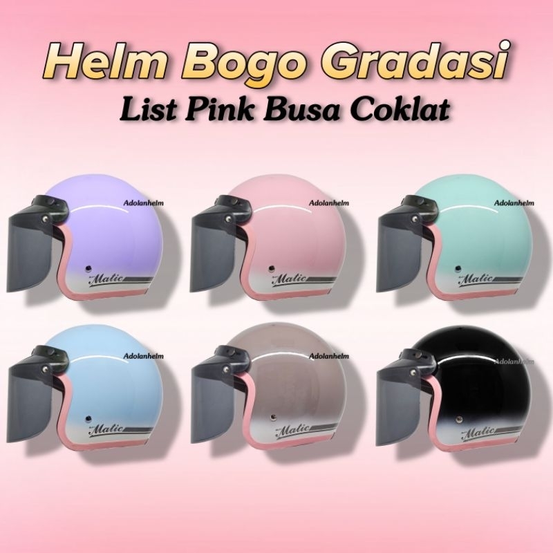 Helm Bogo Classic Gradasi List Pink Busa Coklat SNI