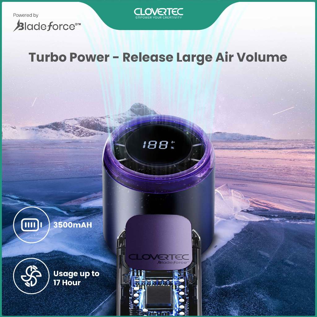 CLOVERTEC Kipas Angin Mini Lipat Portable Handheld Fan Turbo Rechargeable 3500 mAh CHF-03B