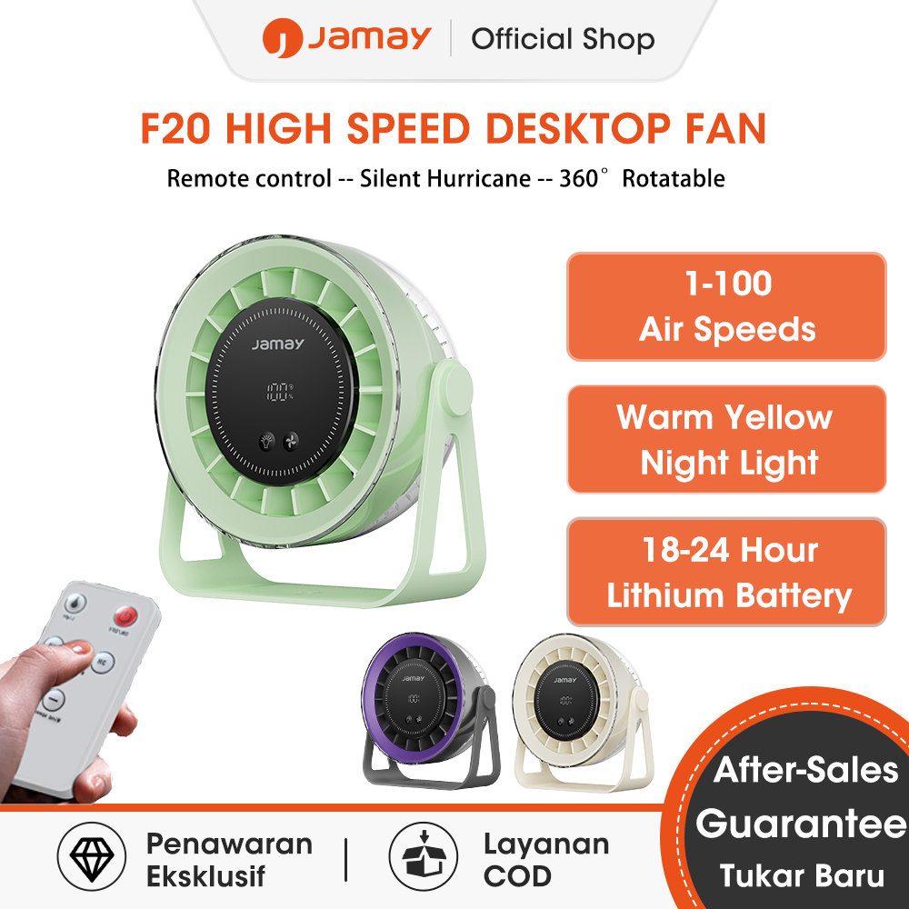 Jamay Portable Kipas Kipas Mini Deastop Fan 100 Gear Air Speeds 360° Adjustable 5 inch Wireless Remote Control LED Display Warm Night Light F20