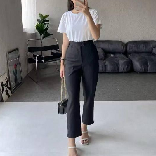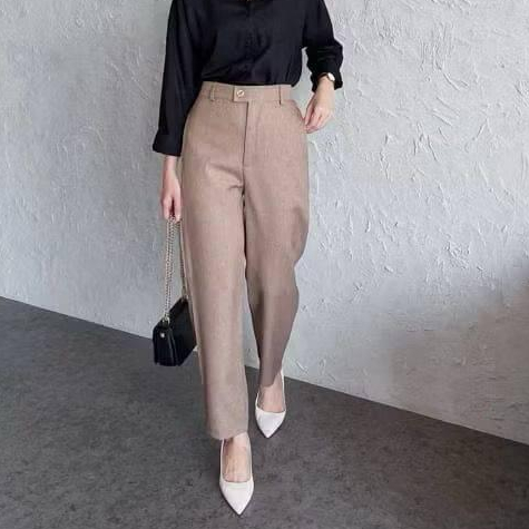 ALEXA PANTS - Celana Kerja Wanita Kantor Daily Simple Pinggang Karet Belakang