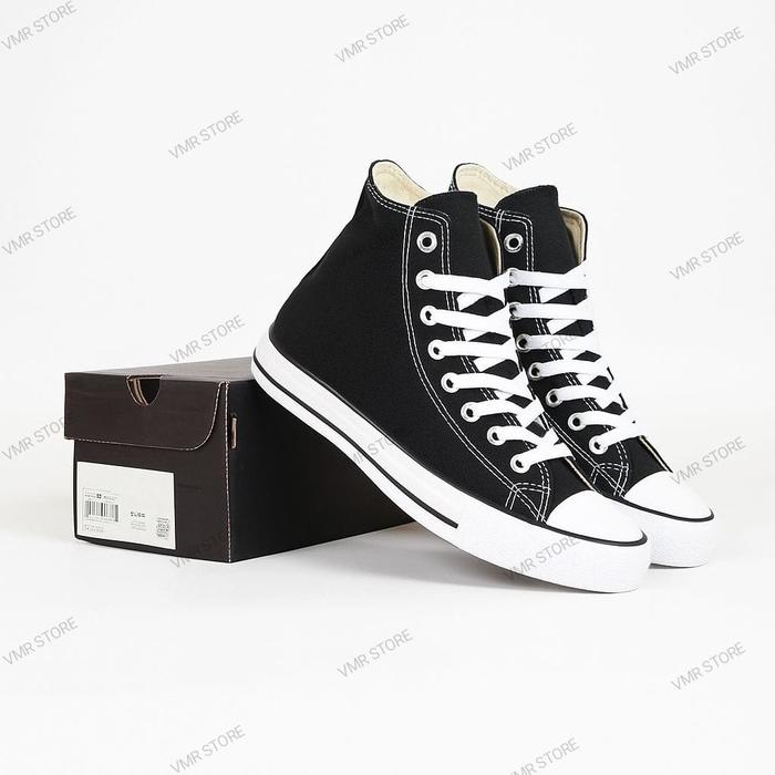 [Star]Sepatu Klasik Tinggi / Sepatu Sekolah Kasual Classic High / Sepatu Kerja Kuliah hitam putih murah - Hitam, 36