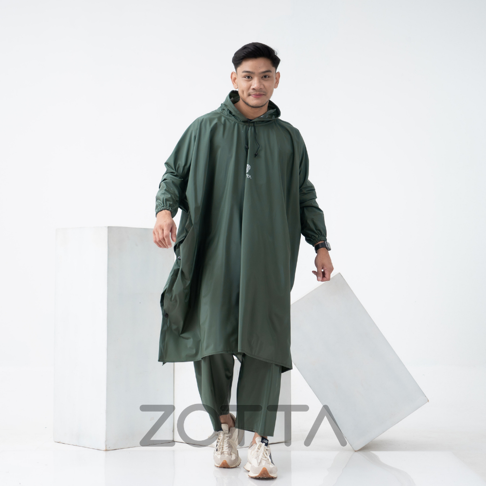 ZOTTA Jas Hujan Ponco Celana Jumbo Tebal dan Kuat Warna Hijau Army