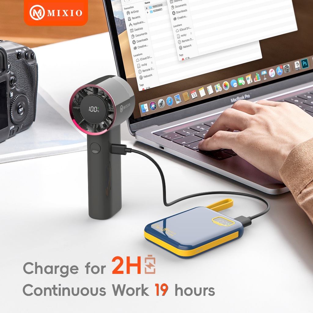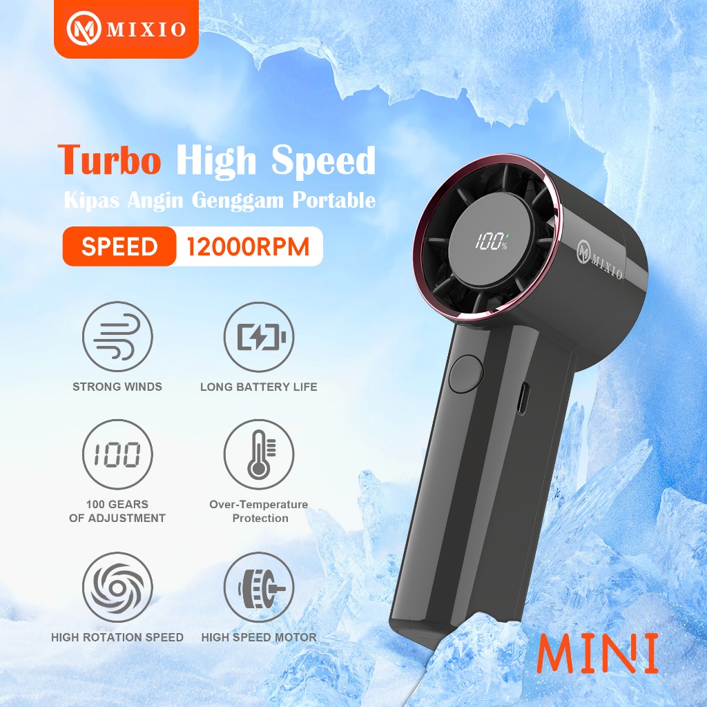 MIXIO GS-03 Mini kipas Strong Wind 100 Gear Wind Speed kipas angin Digital Display Adjustable Turbo kipas tangan untuk olahraga luar ruangan dan pendinginan cepat