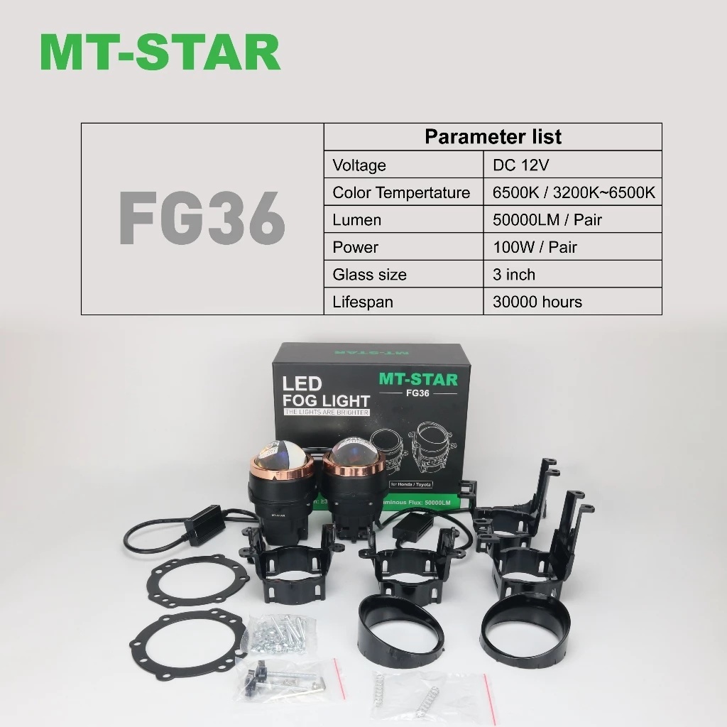 Foglamp Mt-Star Fg36 Biled 3 Inchi Blue-Lens Push Devil Cahaya 3 Warna Waterproof Universal Sepasang Kiri & Kanan
