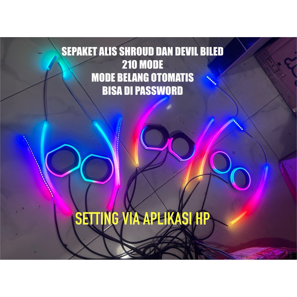 SEPAKET ALIS DAN SHROUD DAN DEVIL BILED RGB SETTING APLIKASI BISA MODE BELANG 12V