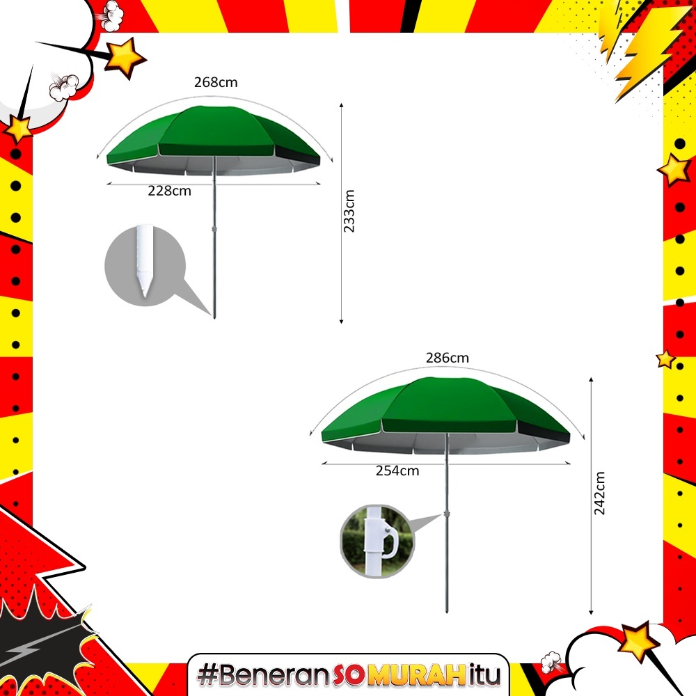 Payung Tenda Lipat Event Payung Pantai Cafe Bazaar Parasol Diameter Berbagai Ukuran Anti UV Kokoh Free Tas