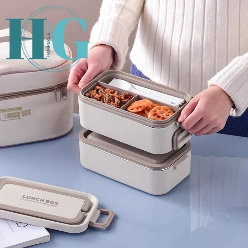 NEZY Premium Kotak Makan Stainless Steel 304 2 Tingkat Bekal Makanan Bontot White Lunch Box Nordic Aesthetic Style