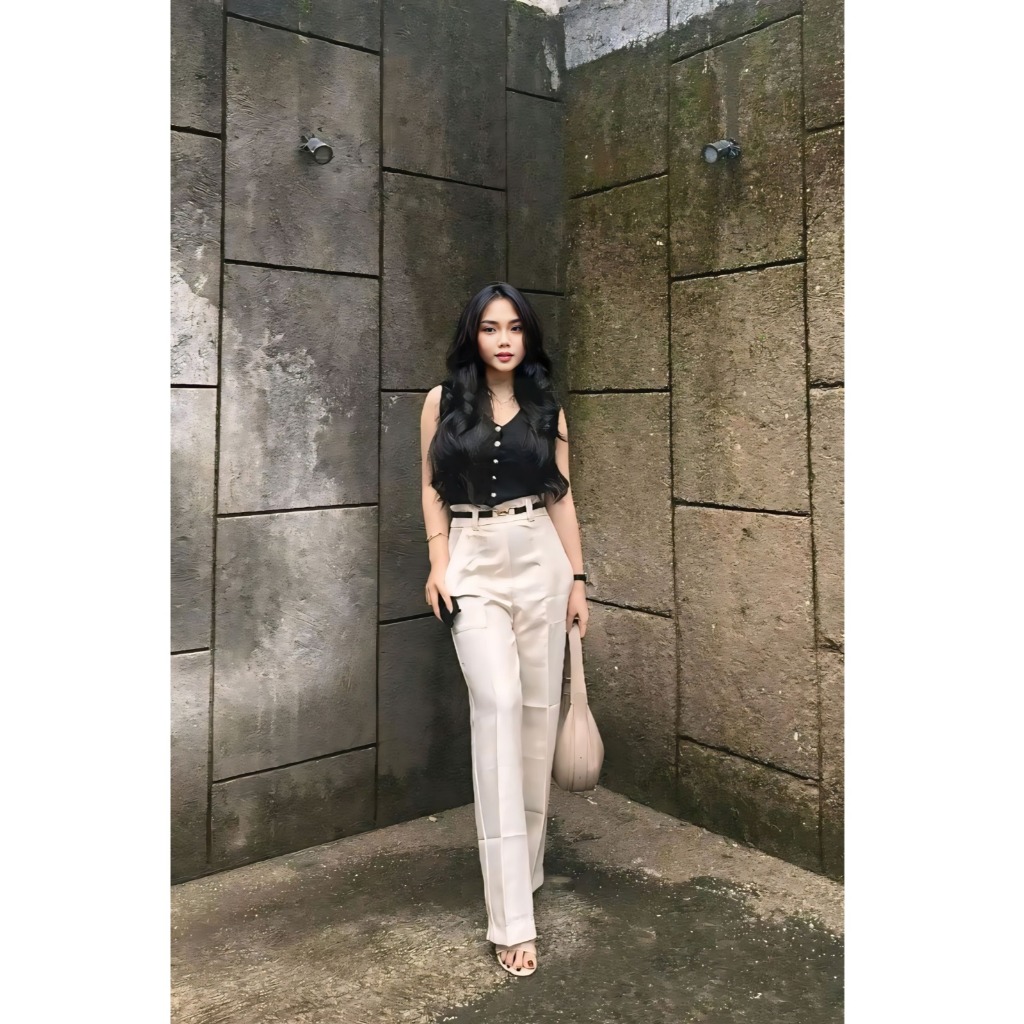 celana wanita Highwaist Pants / celana kerja kantor formal polos kulot loose pants korean style