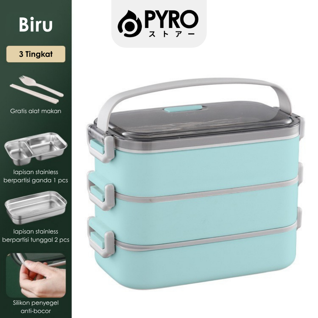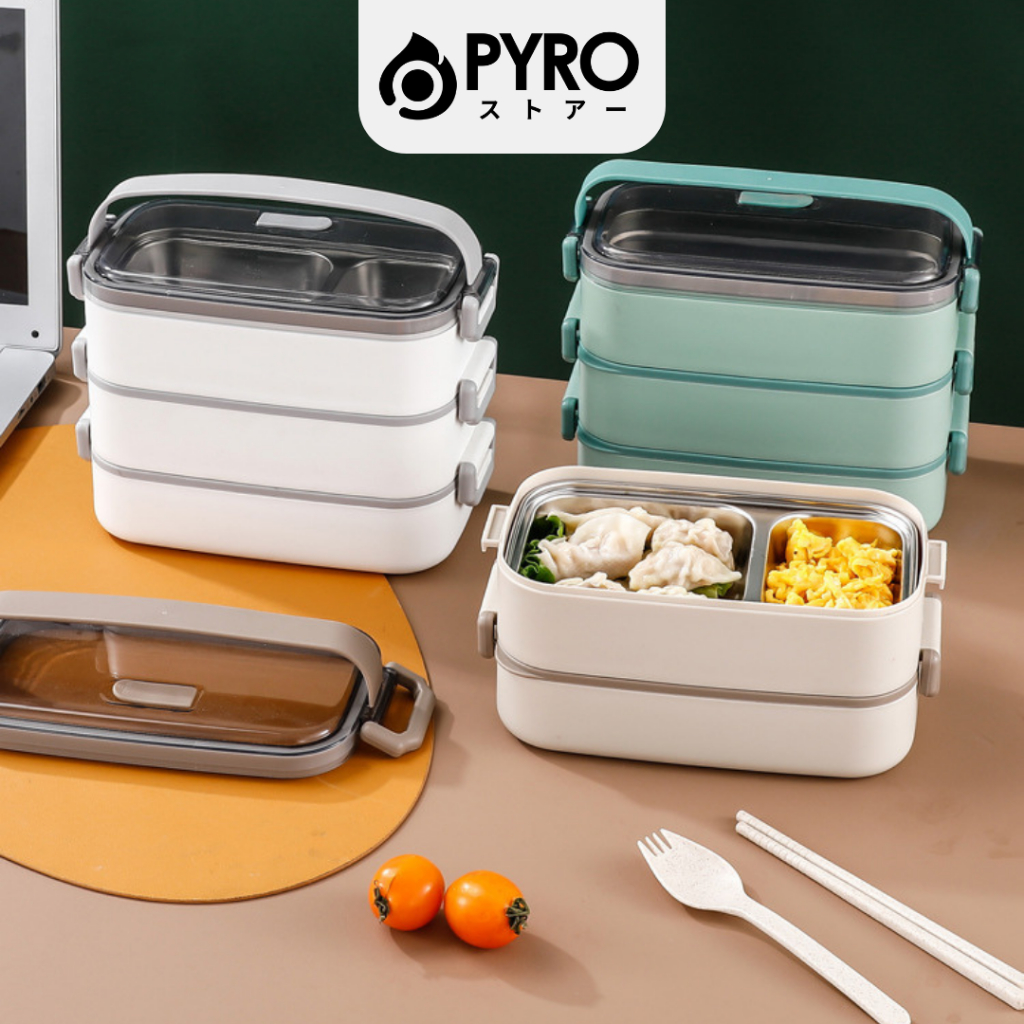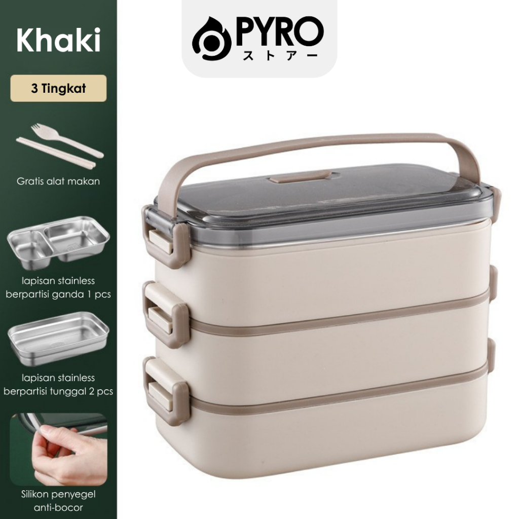 [PYRO] Tempat Makan Susun Bekal Stainless Lunchbox Set Jepang Sekat 2100 ML Anti Bocor Tumpah